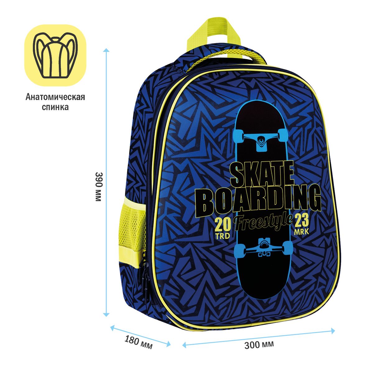 Ранец ArtSpace School Friend "Skate" 39*30*18см, 2 отделения, 2 кармана, анатомическая спинка, пенал, мешок для обуви