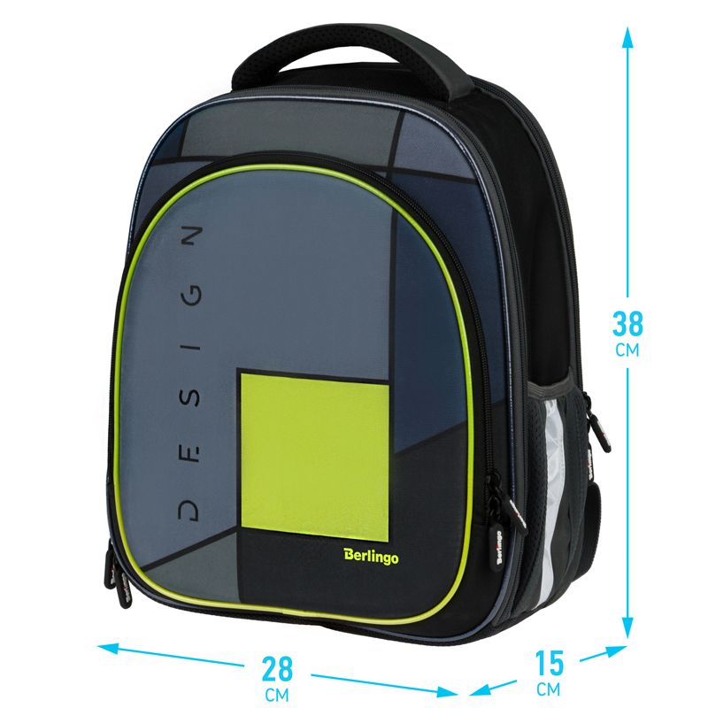 Ранец Berlingo Expert Light облегченный "Green blocks" 38*28*15см, 3 отделения, 2 кармана, анатомическая спинка