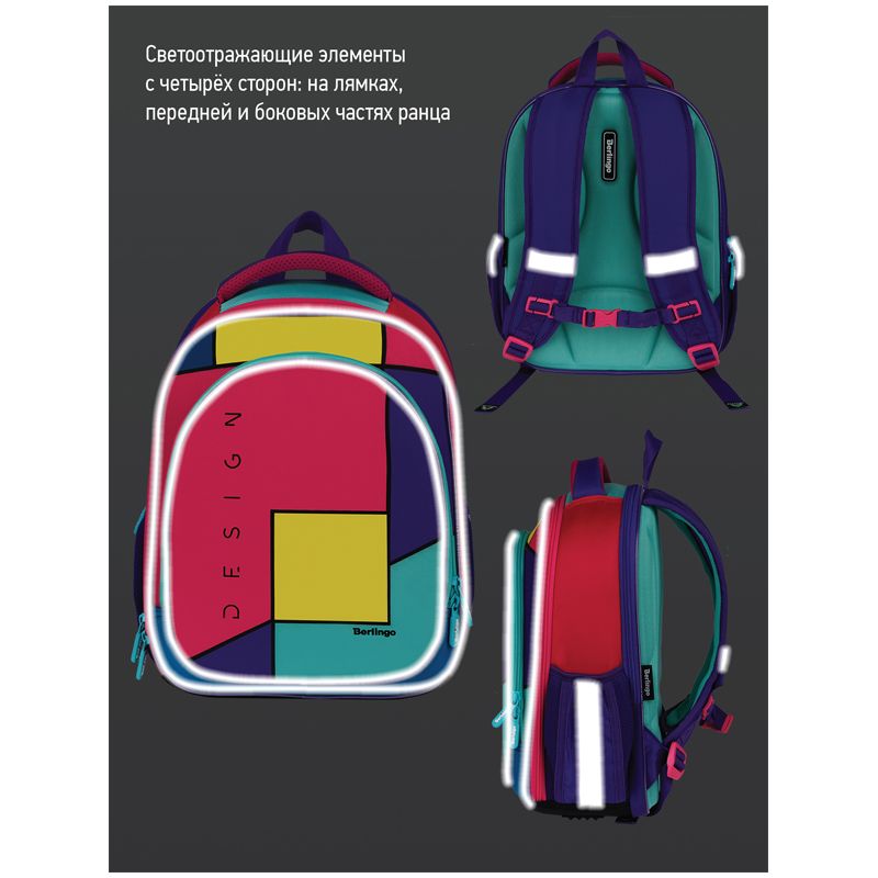 Ранец Berlingo Expert Light облегченный "Pink blocks" 38*28*15см, 3 отделения, 2 кармана, анатомическая спинка