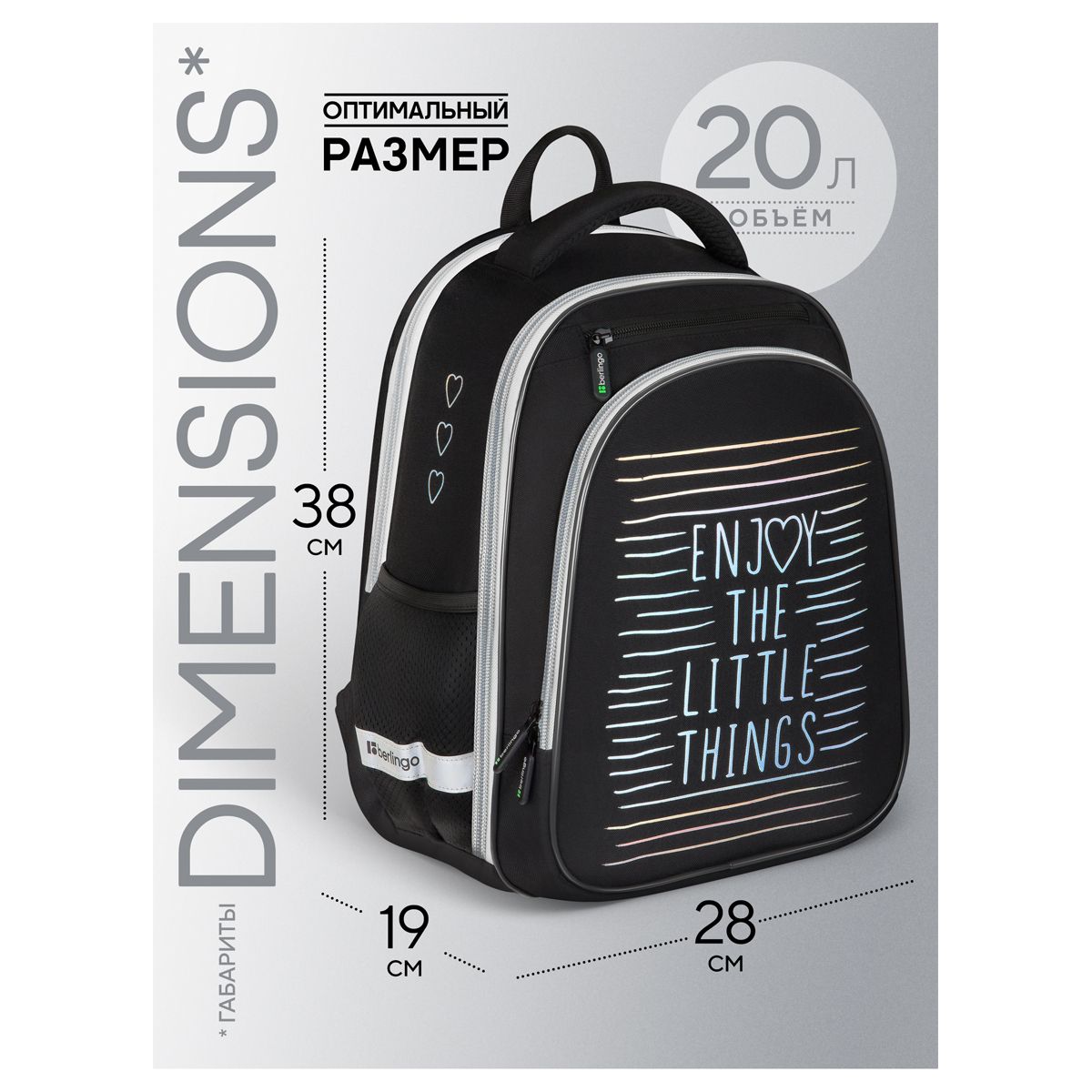 Ранец Berlingo Expert Light Pro "Enjoy the little things" 38*28*19см, 3 отделения, 2 кармана, анатомическая спинка