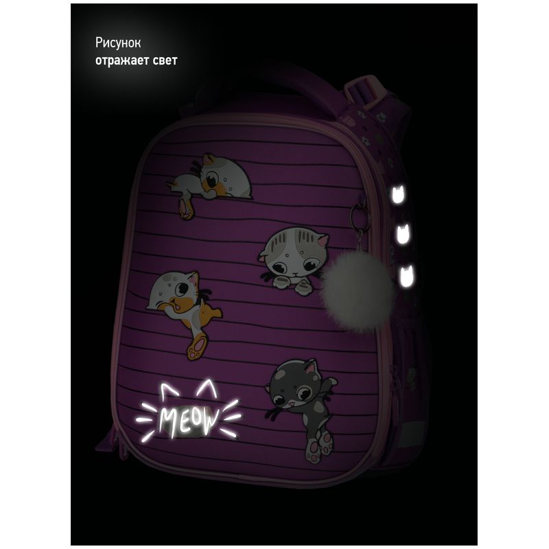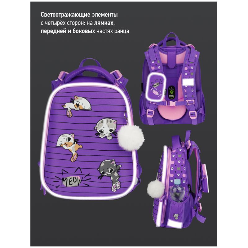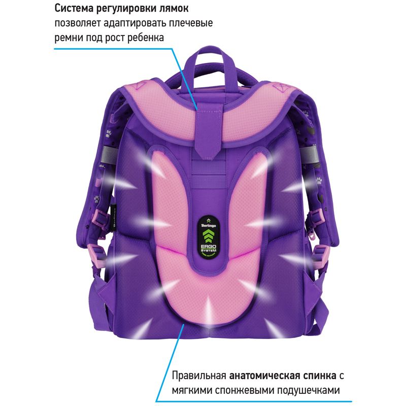 Ранец Berlingo Expert Max "Kittens lilac" 37*28*16см, 2 отделения, анатомическая спинка, дождевик в комплекте