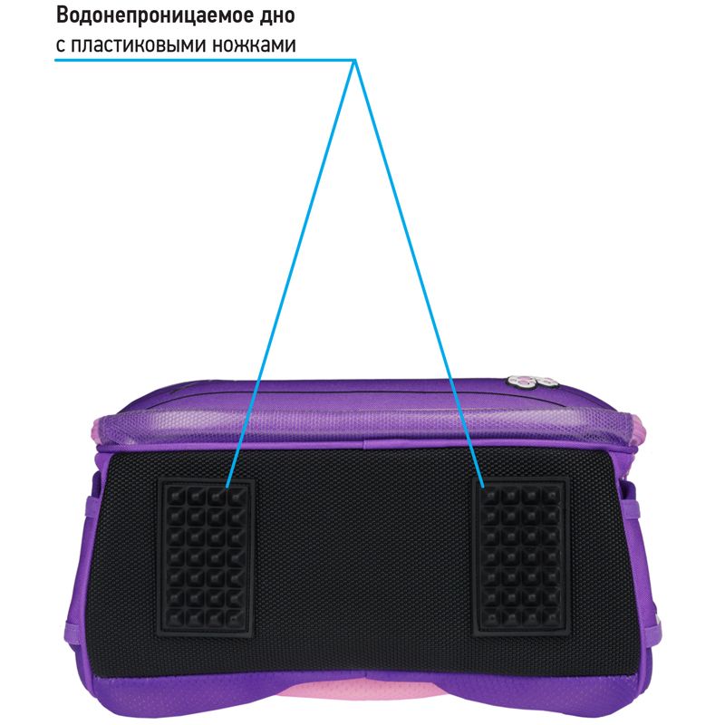 Благодаря анатомической вентилируемой спинке, регулируемым по длине и высоте лямкам, а также нагрудному креплению ранец плотно фиксируется на спине ребенка, что помогает равномерно распределить нагрузку и сохранить правильную осанку. Уплотненная мягкая ручка и петля для подвешивания к парте делают ранец очень удобным. Дно выполнено из водонепроницаемого материала с пластиковыми ножками для защиты от влаги. Световозвращающие элементы на лямках, передней и боковых частях ранца обеспечивают безопасность ребенка в темное время суток. Особенностью данной модели является наличие дождевика, расположенного в специальном кармашке в верхней части ранца. Дождевик оснащен светоотражающими элементами. Подвеска в подарок.