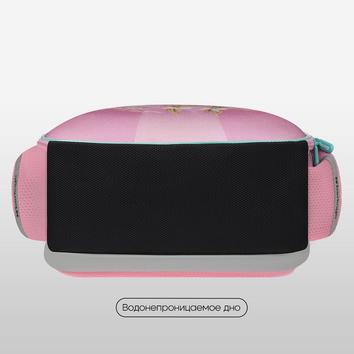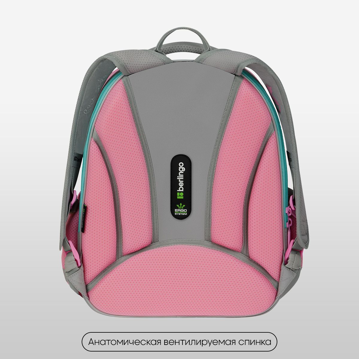 Благодаря анатомической вентилируемой спинке, регулируемым по длине лямкам, а также нагрудному креплению ранец плотно фиксируется на спине ребенка, что помогает равномерно распределить нагрузку и сохранить правильную осанку. Уплотненная мягкая ручка и петля для подвешивания к парте делают ранец очень удобным. Дно выполнено из водонепроницаемого материала для надежной защиты от влаги. Световозвращающие элементы на лямках, передней и боковых частях ранца обеспечивают безопасность ребенка в темное время суток.
