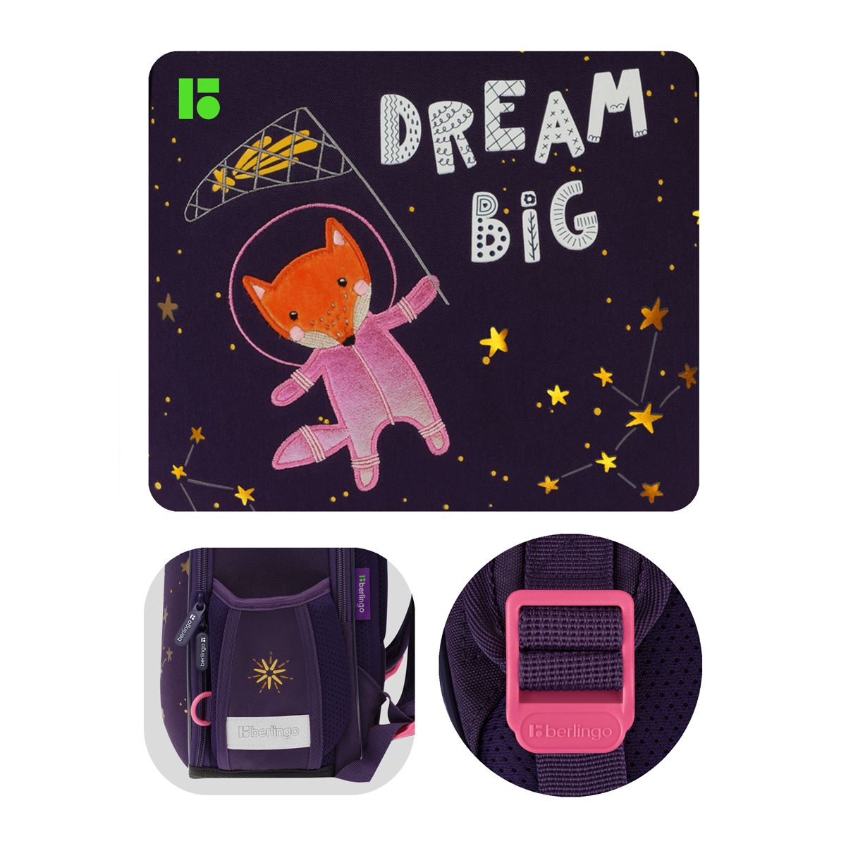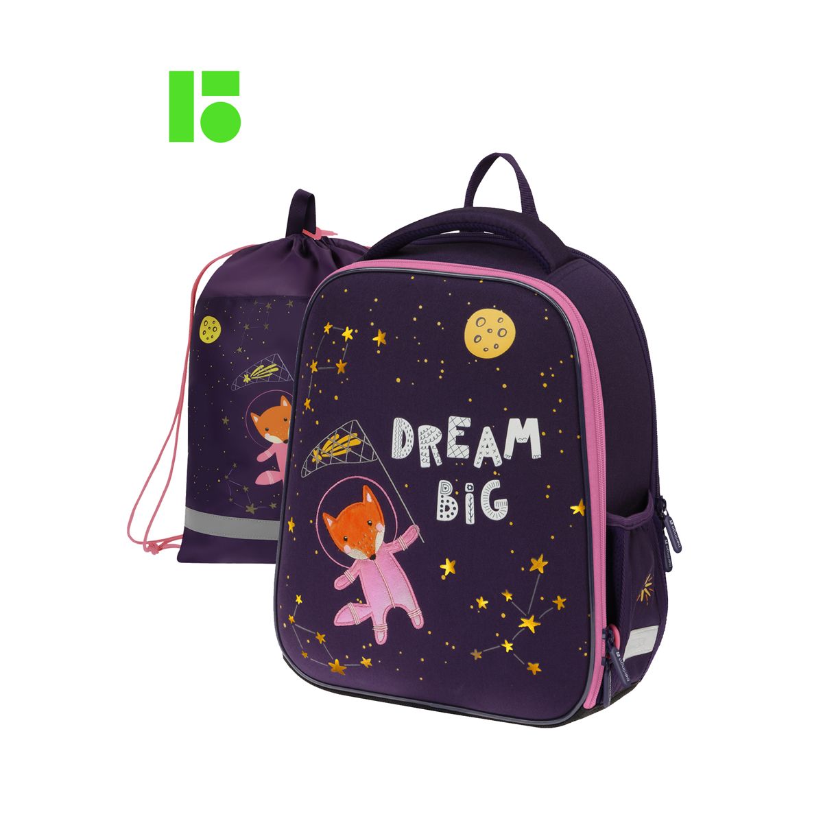Ранец Berlingo Expert Mini "Fox Dreamer" 36*27*14см, 2 отделения, 2 кармана, анатомическая спинка, мешок для обуви