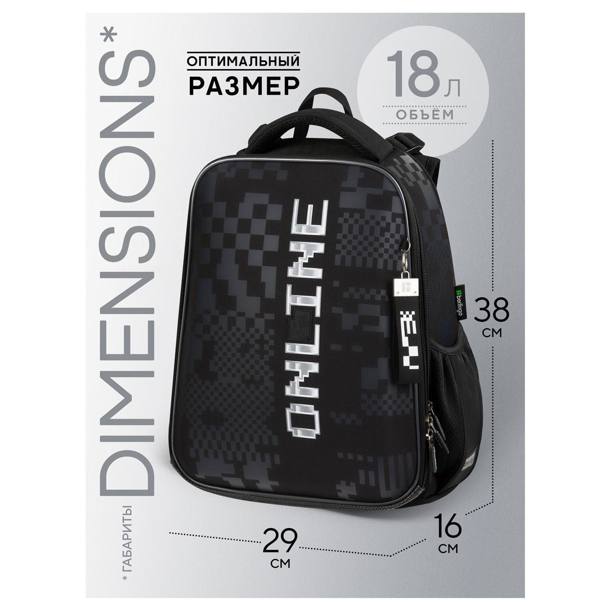 Ранец Berlingo Expert "Online" 37*28*16см, 2 отделения, 2 кармана, анатомическая спинка
