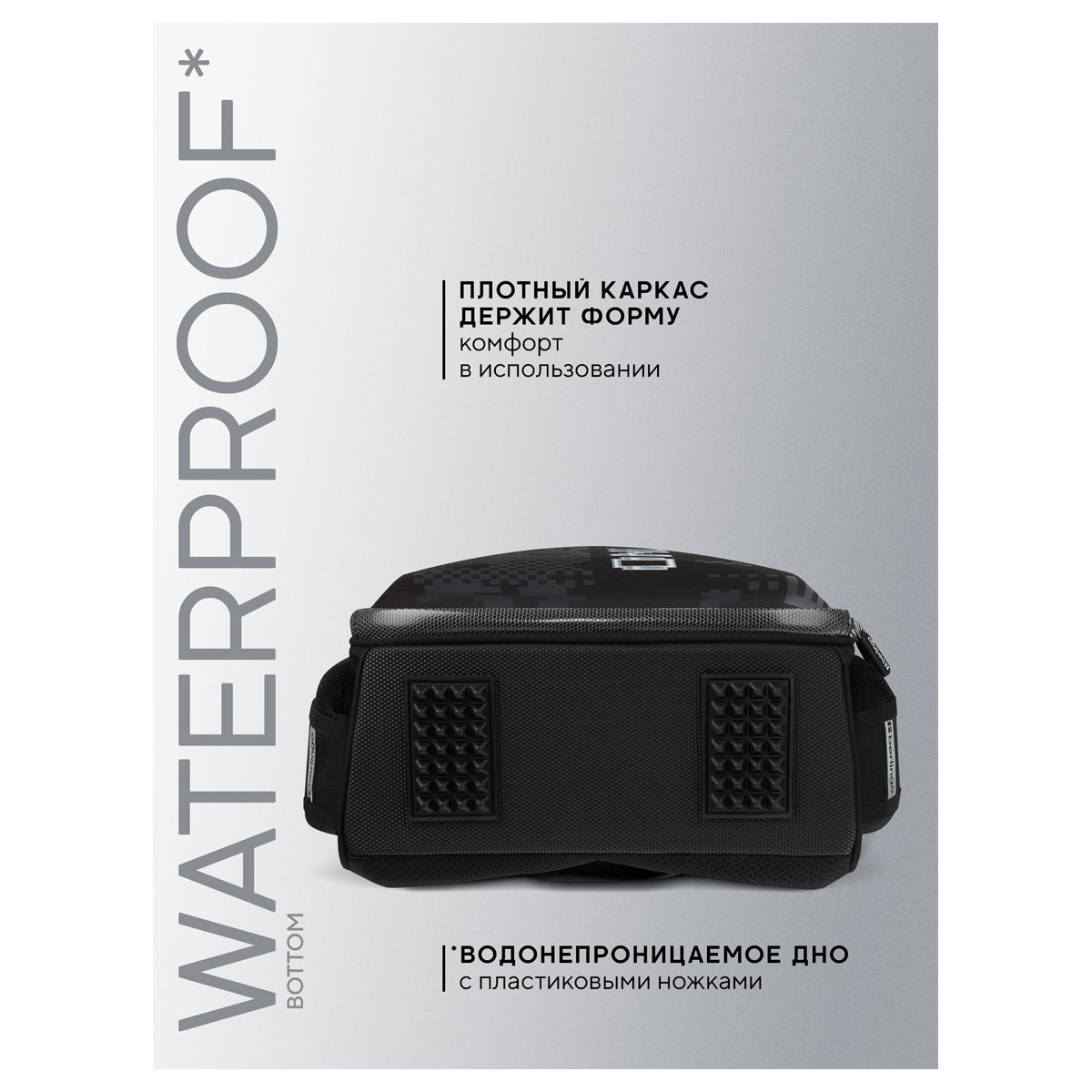 Благодаря анатомической вентилируемой спинке, регулируемым по длине и высоте лямкам, а также нагрудному креплению ранец плотно фиксируется на спине ребенка, что помогает равномерно распределить нагрузку и сохранить правильную осанку. Уплотненная мягкая ручка и петля для подвешивания к парте делают ранец очень удобным. Дно выполнено из водонепроницаемого материала с пластиковыми ножками для защиты от влаги. Световозвращающие элементы на лямках, передней и боковых частях ранца обеспечивают безопасность ребенка в темное время суток. Вес ранца менее 1 кг.