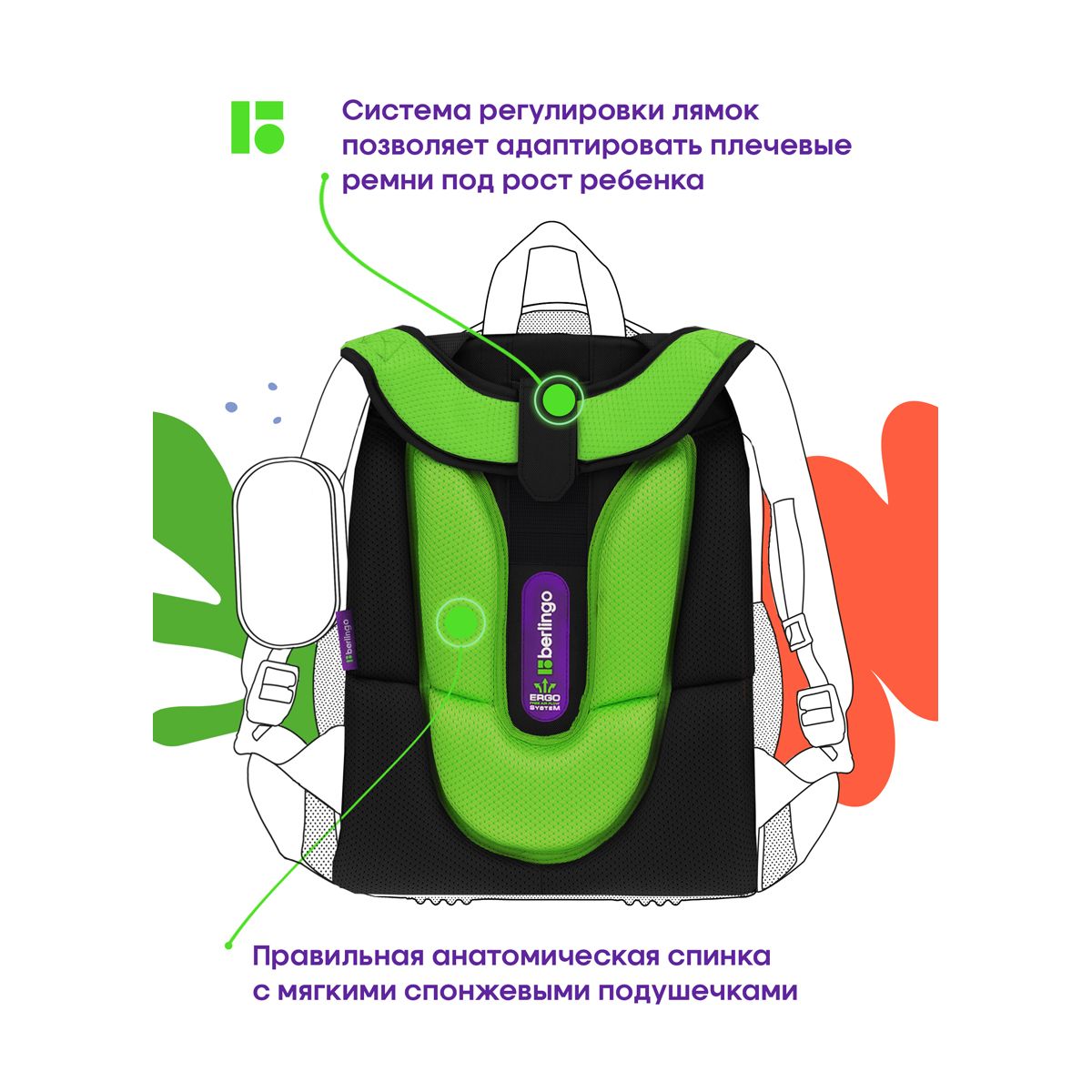 благодаря анатомической вентилируемой спинке, регулируемым по длине и высоте лямкам, а также нагрудному креплению ранец плотно фиксируется на спине ребенка, что помогает равномерно распределить нагрузку и сохранить правильную осанку. Фирменный брелок в подарок.