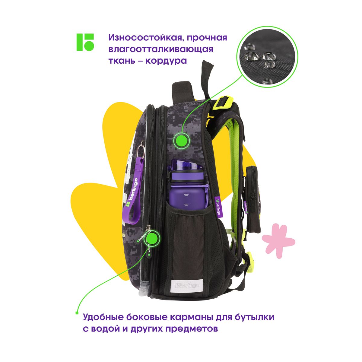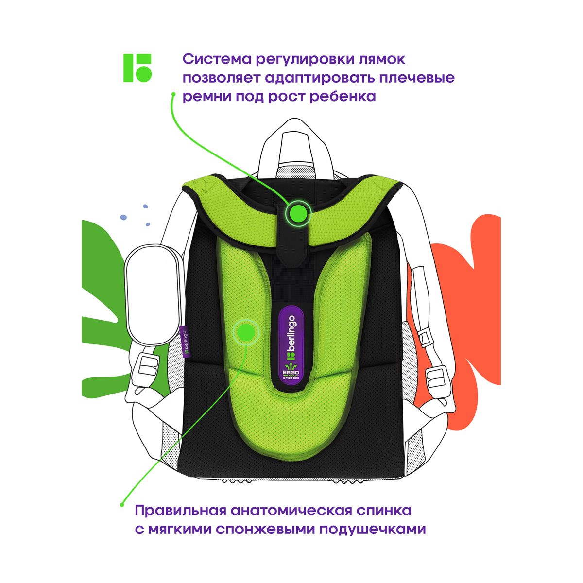 благодаря анатомической вентилируемой спинке, регулируемым по длине и высоте лямкам, а также нагрудному креплению ранец плотно фиксируется на спине ребенка, что помогает равномерно распределить нагрузку и сохранить правильную осанку. Фирменный брелок в подарок.
