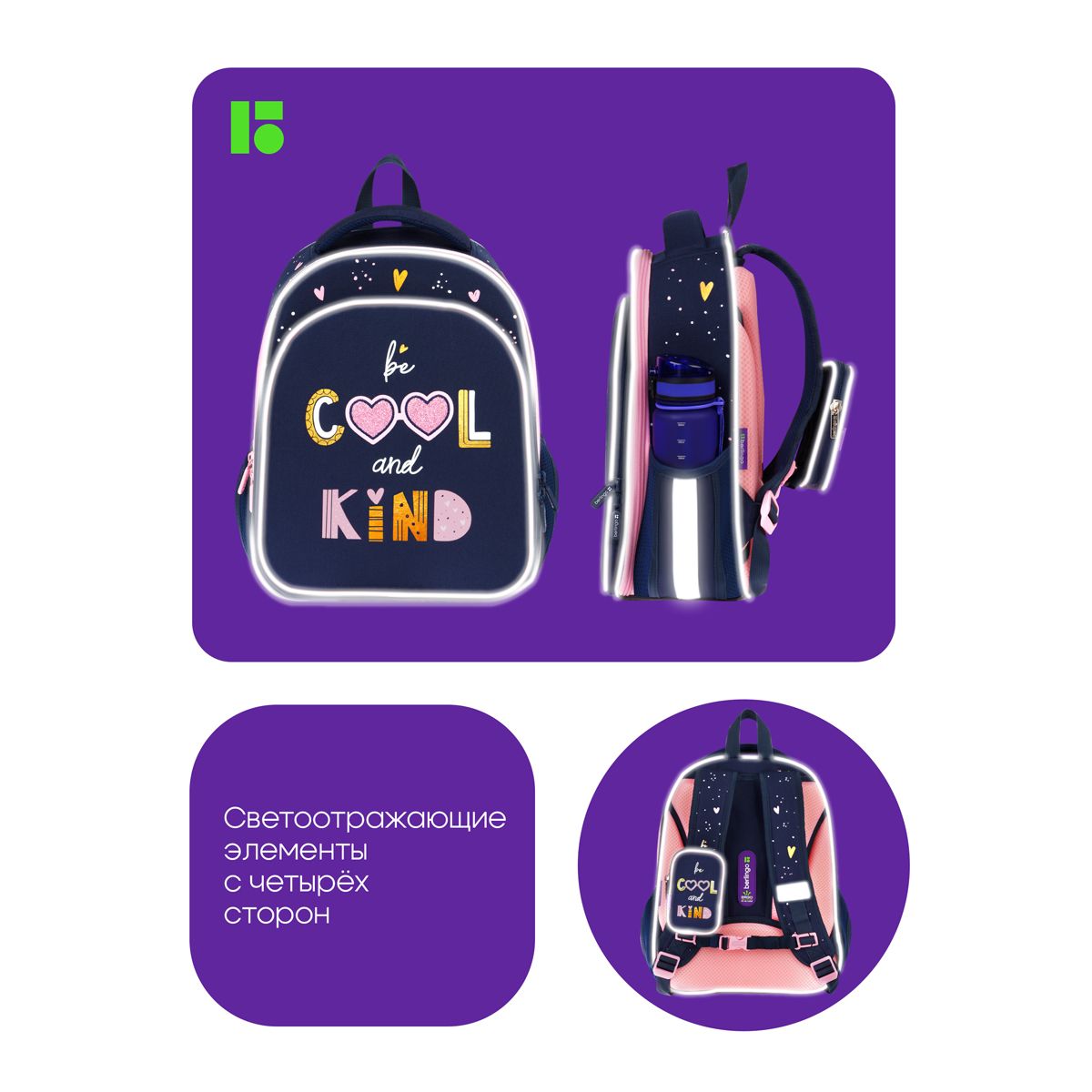 Благодаря анатомической вентилируемой спинке, а также регулируемым по длине лямкам и нагрудному креплению ранец плотно фиксируется на спине ребенка, равномерно распределяется нагрузка и сохраняется правильная осанка. Ранец оснащен усовершенствованной конструкцией лямок с амортизирующим эффектом, которая помогает снизить нагрузку на плечи и спину ребенка. Дно выполнено из водонепроницаемого материала и оснащено пластиковыми ножками для защиты содержимого от влаги. Ранец оснащен плотной ручкой и петлей для подвешивания. Световозвращающие элементы на лямках, передней и боковой частях ранца обеспечивают безопасность в темное время суток. Вес 1 кг.