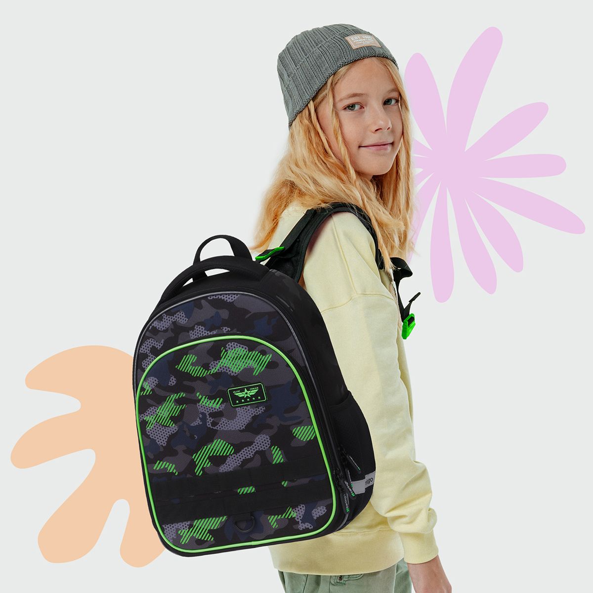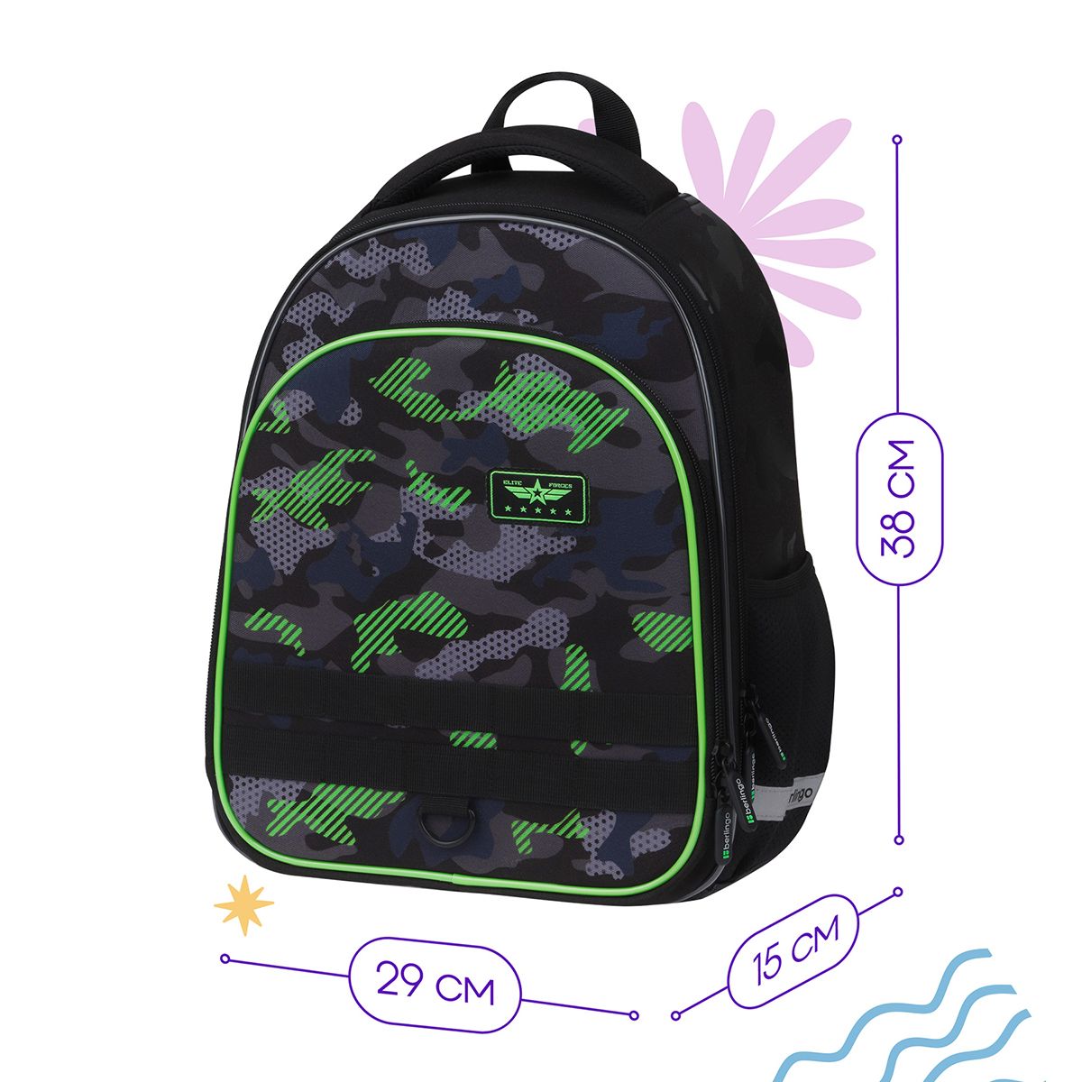 Ранец Berlingo Expert Plus "Black and green" 38*29*15см, 2 отделения, 2 кармана, анатомическая спинка