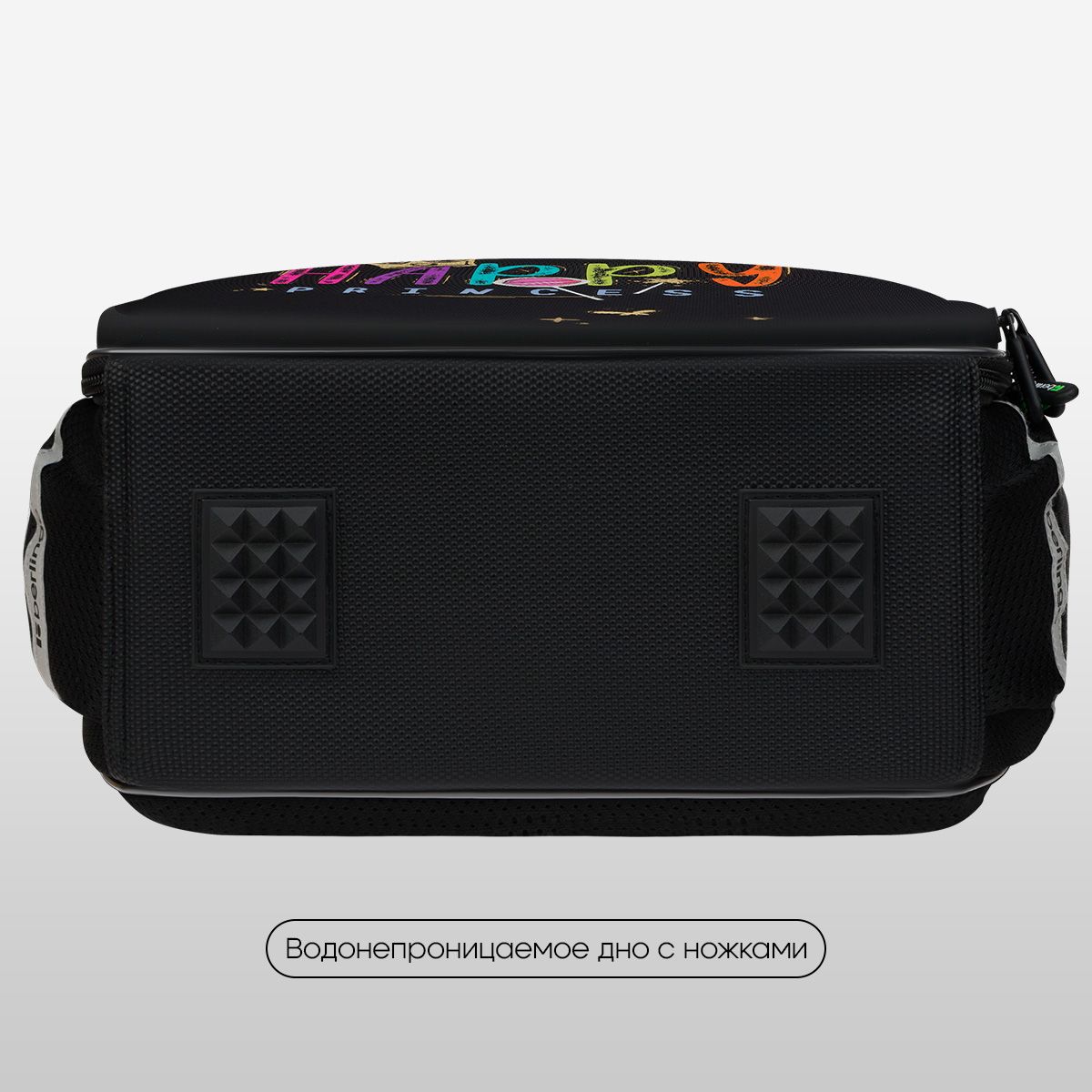 Благодаря анатомической вентилируемой спинке, а также регулируемым по длине лямкам и нагрудному креплению ранец плотно фиксируется на спине ребенка, равномерно распределяется нагрузка и сохраняется правильная осанка. Дно выполнено из водонепроницаемого материала с пластиковыми ножками для защиты содержимого от влаги. Ранец оснащен плотной ручкой и петлей для подвешивания. Световозвращающие элементы на лямках, передней и боковой частях ранца обеспечивают безопасность в темное время суток.