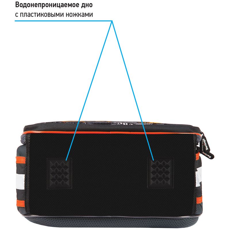 Благодаря анатомической вентилируемой спинке, а также регулируемым по длине лямкам и нагрудному креплению ранец плотно фиксируется на спине ребенка, равномерно распределяется нагрузка и сохраняется правильная осанка. Ранец оснащен усовершенствованной конструкцией лямок с амортизирующим эффектом, которая помогает снизить нагрузку на плечи и спину ребенка. Дно выполнено из водонепроницаемого материала и оснащено пластиковыми ножками для защиты содержимого от влаги. Ранец оснащен плотной ручкой и петлей для подвешивания. Световозвращающие элементы на лямках, передней и боковой частях ранца обеспечивают безопасность в темное время суток. Вес 1 кг.