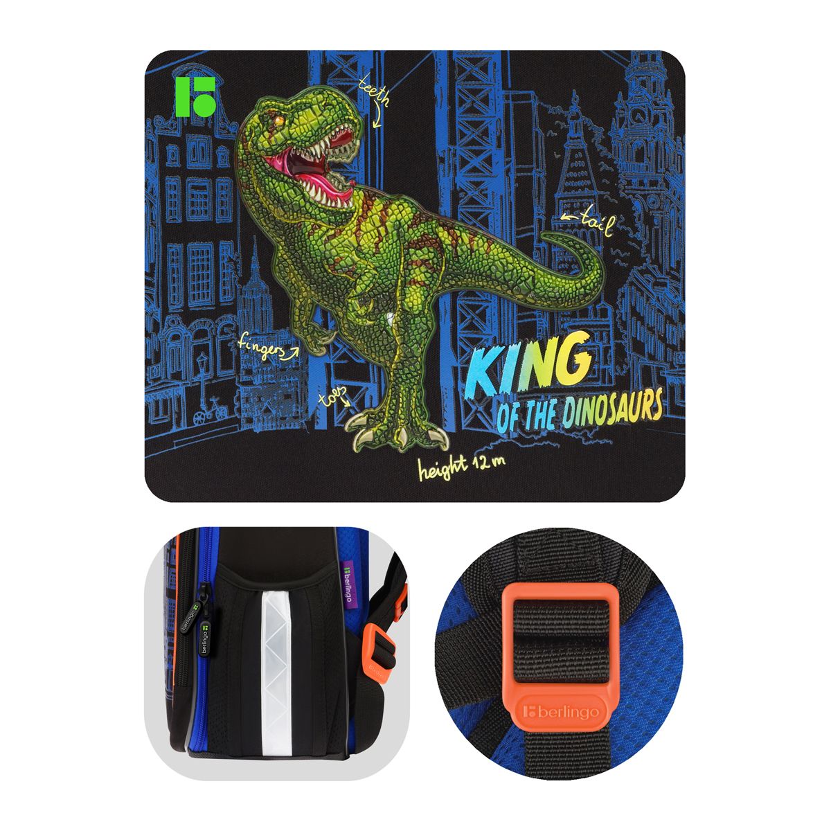 Ранец Berlingo Expert Plus "T-Rex style" 37*28*16см, 2 отделения, 2 кармана, анатомическая спинка