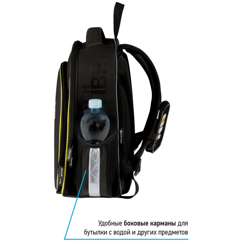 Благодаря анатомической вентилируемой спинке, а также регулируемым по длине лямкам и нагрудному креплению ранец плотно фиксируется на спине ребенка, равномерно распределяется нагрузка и сохраняется правильная осанка. Ранец оснащен усовершенствованной конструкцией лямок с амортизирующим эффектом, которая помогает снизить нагрузку на плечи и спину ребенка. Дно выполнено из водонепроницаемого материала и оснащено пластиковыми ножками для защиты содержимого от влаги. Ранец оснащен плотной ручкой и петлей для подвешивания. Световозвращающие элементы на лямках, передней и боковой частях ранца обеспечивают безопасность в темное время суток. Вес 1 кг.
