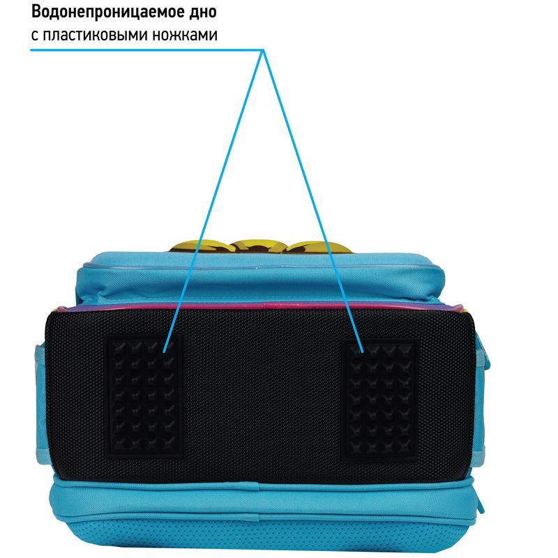Уплотненная мягкая ручка и петля для подвешивания к парте делают ранец очень удобным. Благодаря анатомической вентилируемой спинке, регулируемым по длине лямкам и нагрудному креплению ранец плотно фиксируется на спине ребенка, что помогает равномерно распределить нагрузку и сохранить правильную осанку. Дно выполнено из водонепроницаемого материала с пластиковыми ножками для защиты содержимого от влаги. Световозвращающие элементы на лямках, передней и боковых частях ранца обеспечивают безопасность ребенка в темное время суток. Подвеска в подарок. Вес менее 1 кг.
