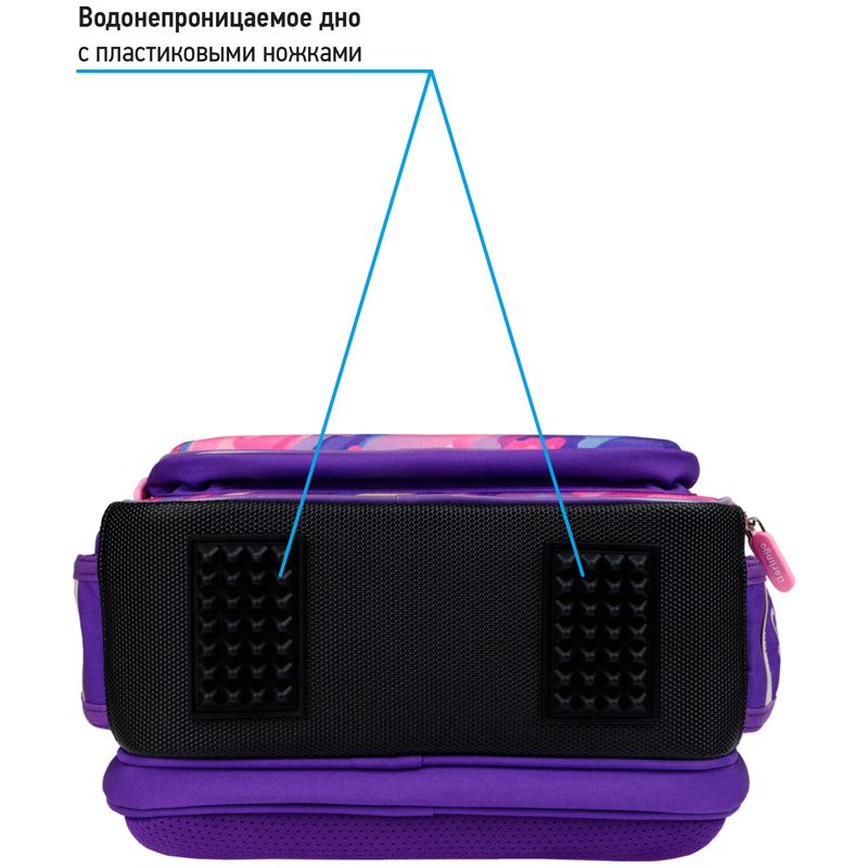 Уплотненная мягкая ручка и петля для подвешивания к парте делают ранец очень удобным. Благодаря анатомической вентилируемой спинке, регулируемым по длине лямкам и нагрудному креплению ранец плотно фиксируется на спине ребенка, что помогает равномерно распределить нагрузку и сохранить правильную осанку. Дно выполнено из водонепроницаемого материала с пластиковыми ножками для защиты содержимого от влаги. Световозвращающие элементы на лямках, передней и боковых частях ранца обеспечивают безопасность ребенка в темное время суток. Подвеска в подарок. Вес менее 1 кг.
