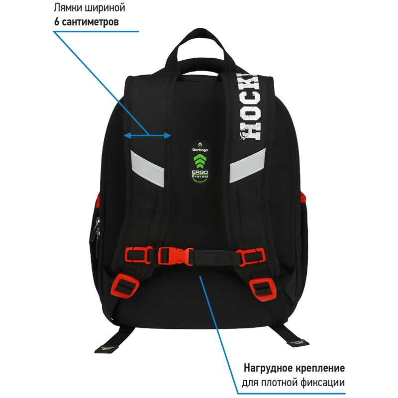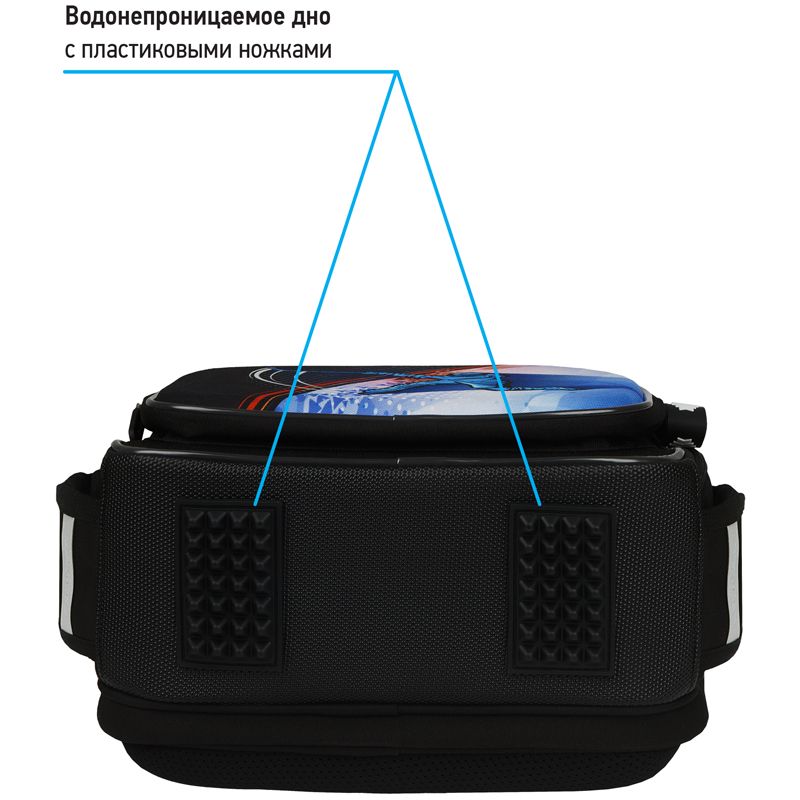 Уплотненная мягкая ручка и петля для подвешивания к парте делают ранец очень удобным. Благодаря анатомической вентилируемой спинке, регулируемым по длине лямкам и нагрудному креплению ранец плотно фиксируется на спине ребенка, что помогает равномерно распределить нагрузку и сохранить правильную осанку. Дно выполнено из водонепроницаемого материала с пластиковыми ножками для защиты содержимого от влаги. Световозвращающие элементы на лямках, передней и боковых частях ранца обеспечивают безопасность ребенка в темное время суток. Подвеска в подарок. Вес менее 1 кг.