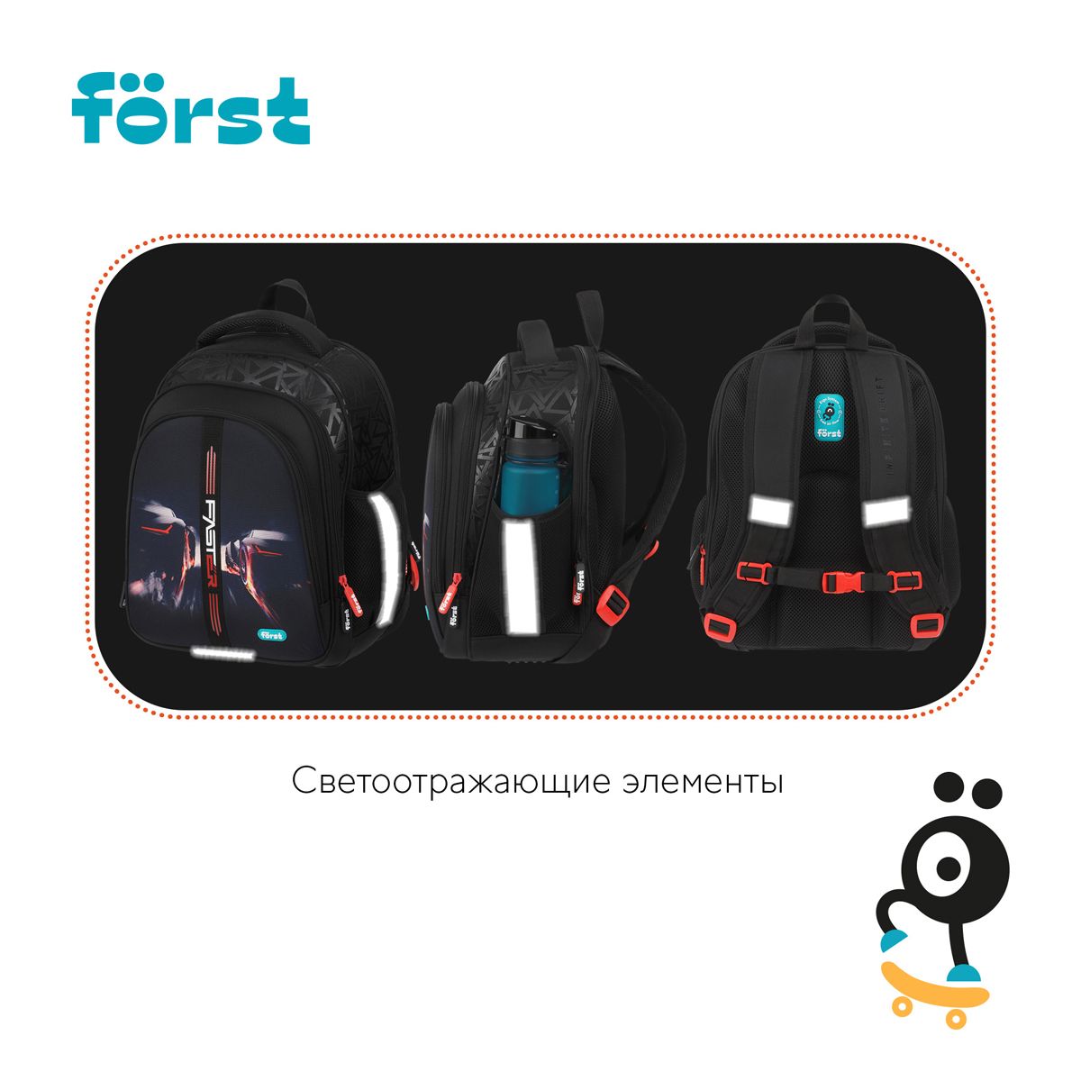 Ранец Först F-Base "Faster" 36*29*17см, 3 отделения, 2 кармана, анатомическая спинка
