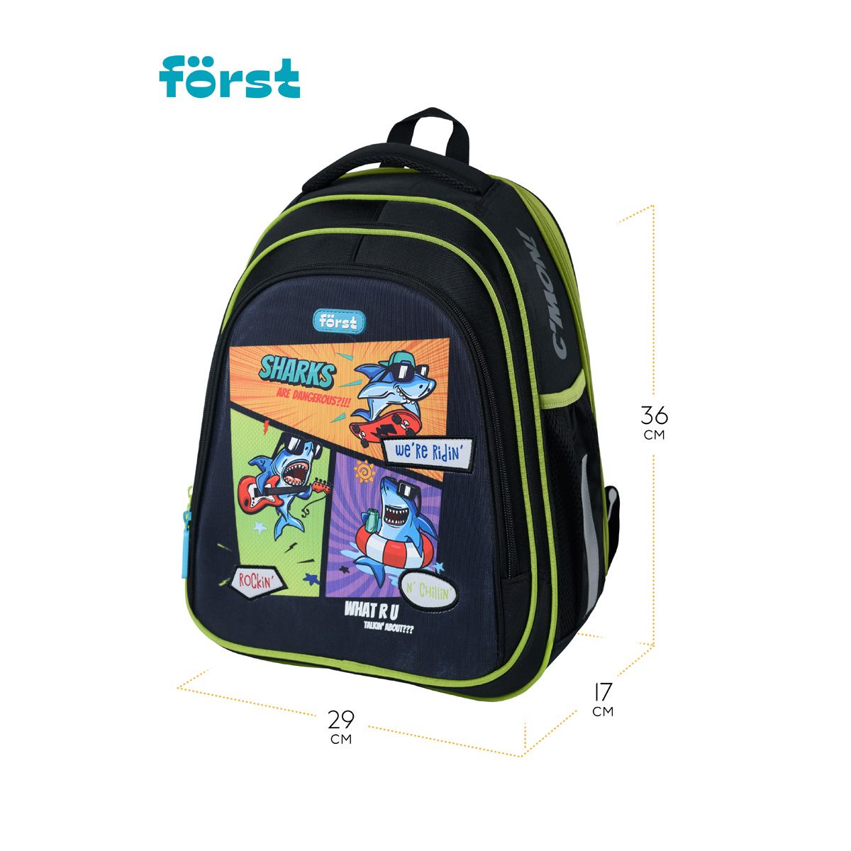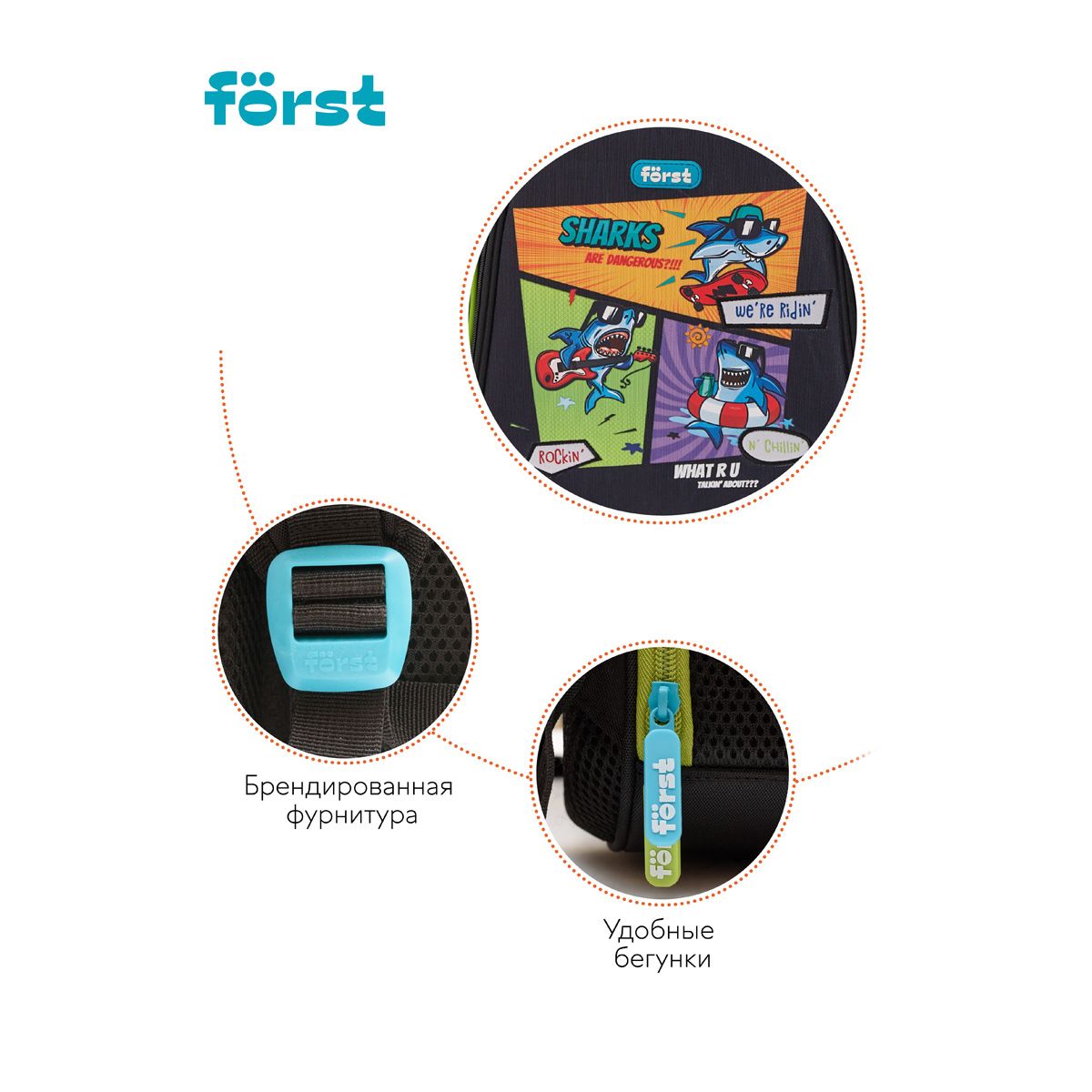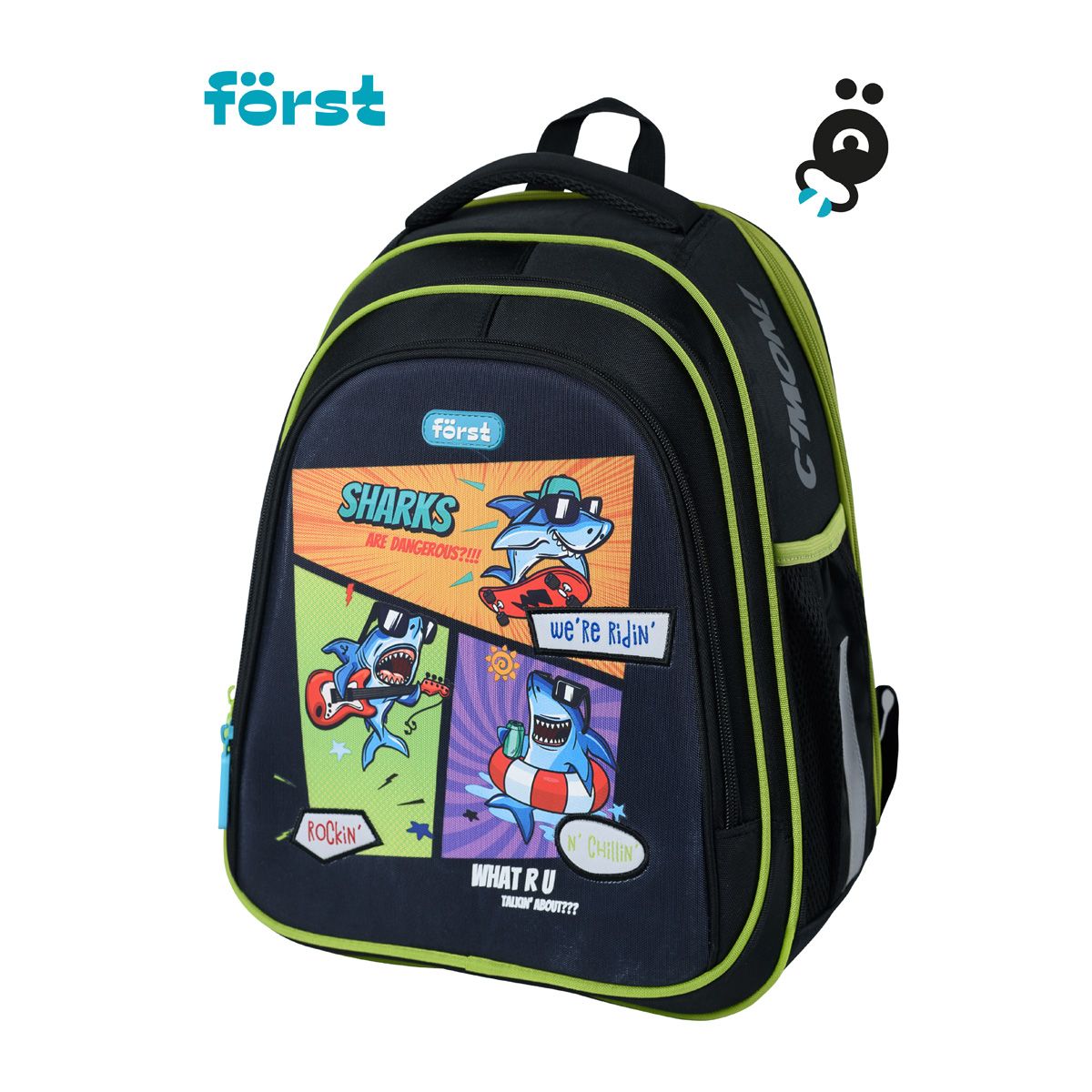 Ранец Först F-BASE "Shark party" 36*29*17см, 3 отделения, 2 кармана, анатомическая спинка