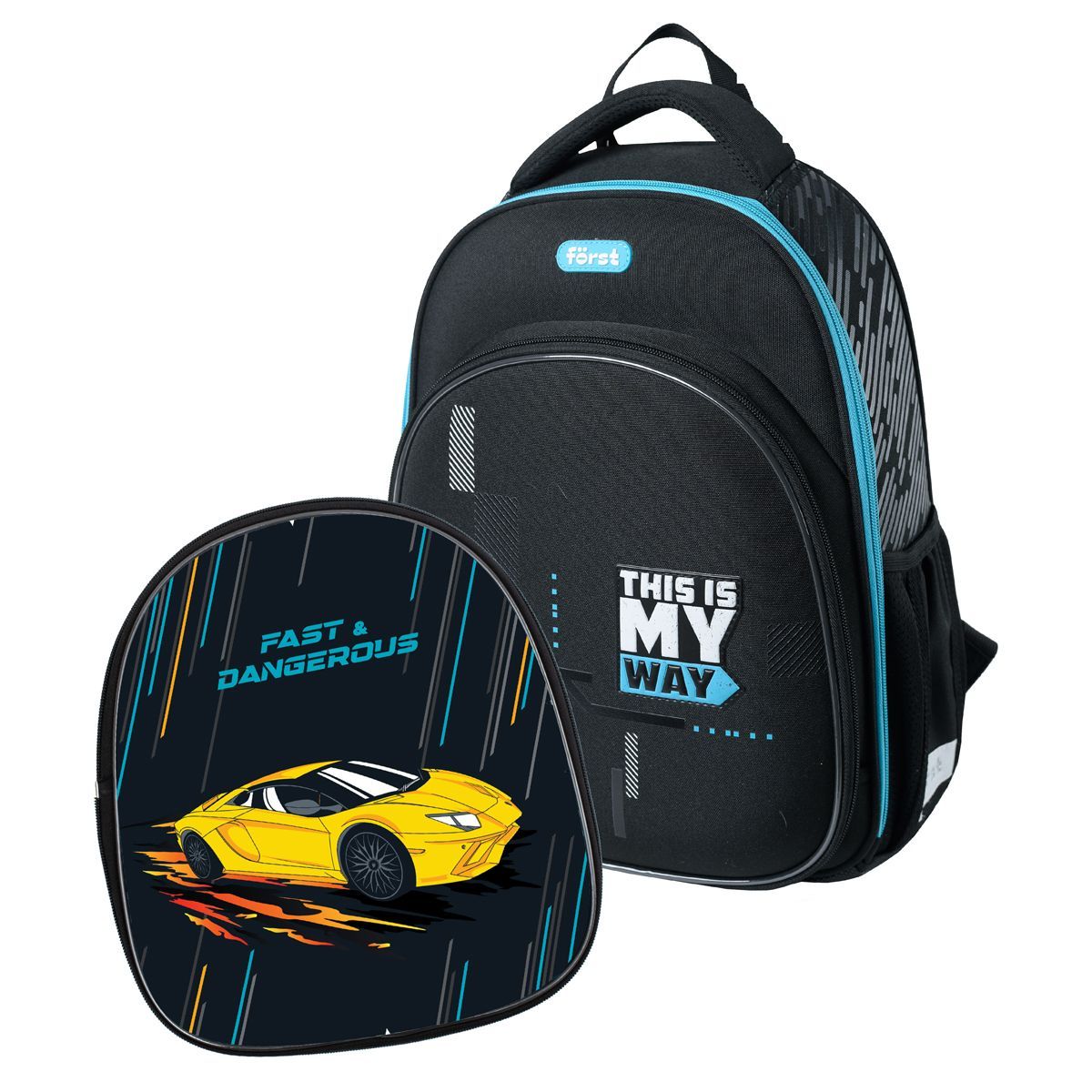 Ранец Först F-Complex "Way to win" в комплекте со сменой передней панелью, 39*28*18см, 2 отделения, 2 кармана, анатомическая спинка