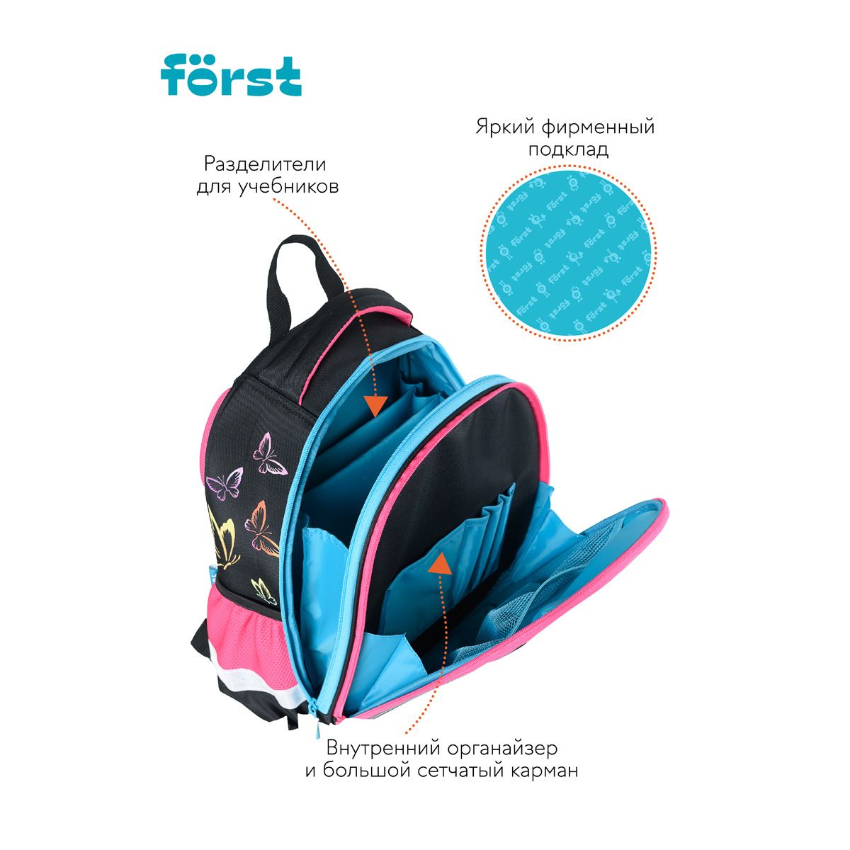 Ранец Först F-Glow "Colors of nature" 37*29,5*16см, 2 отделения, 2 кармана, анатомическая спинка