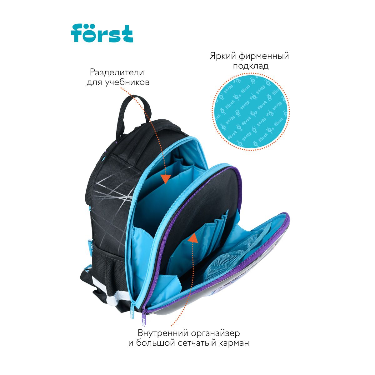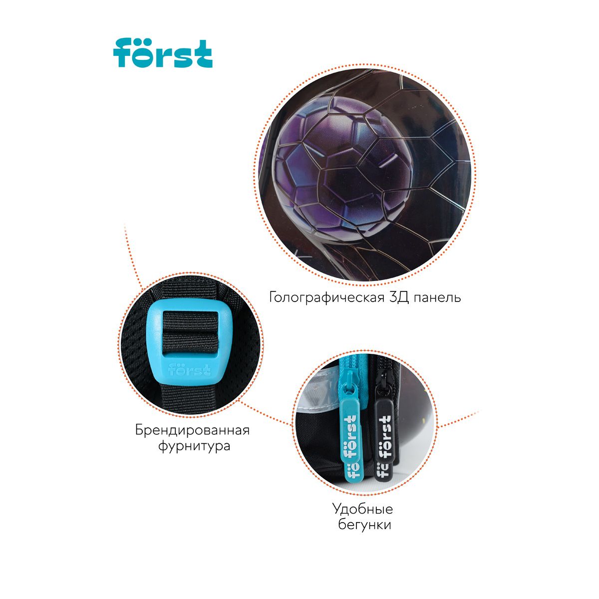 Ранец Först F-Glow "Goal" 37*29,5*16см, 2 отделения, 2 кармана, анатомическая спинка