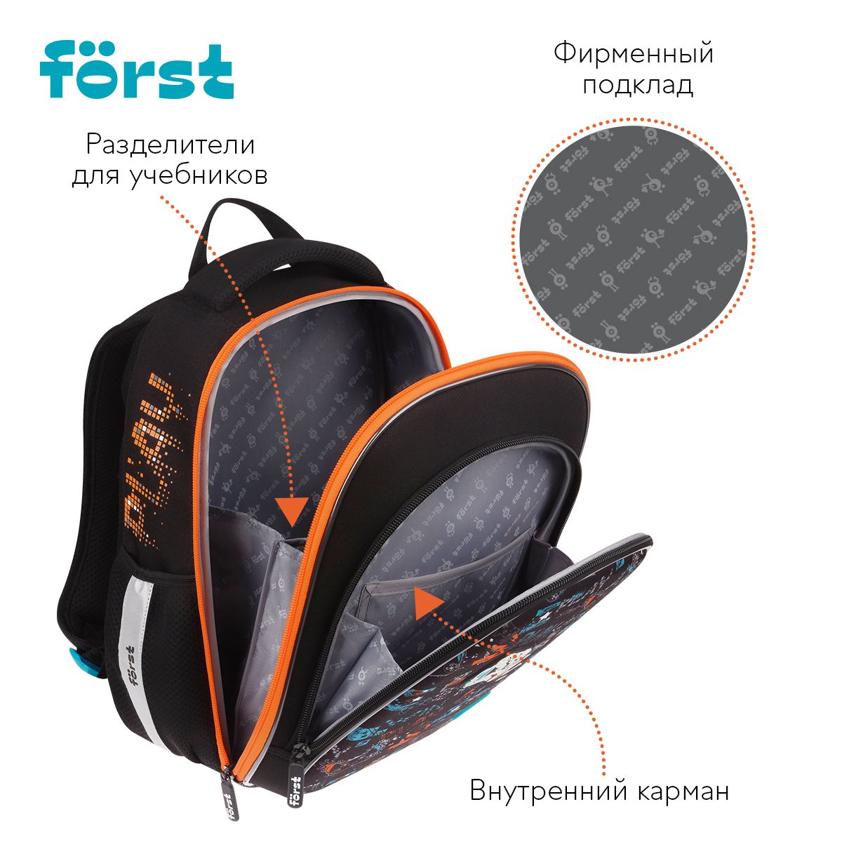 Ранец Först F-Light "Flawless Victory" 36*27*15см, 2 отделения, 2 кармана, анатомическая спинка