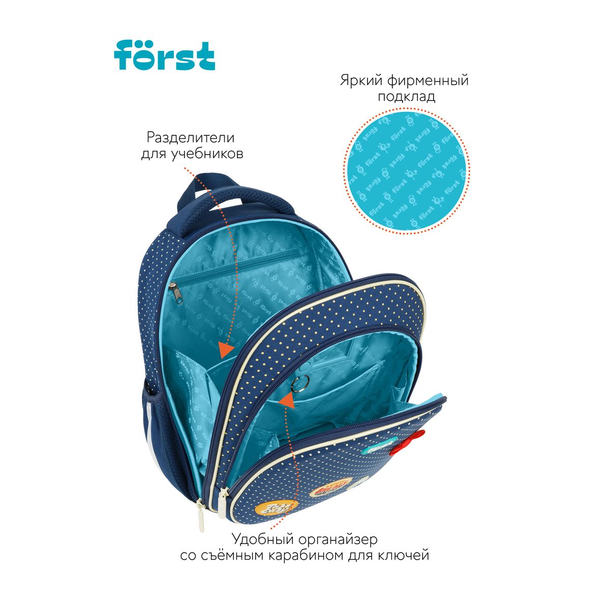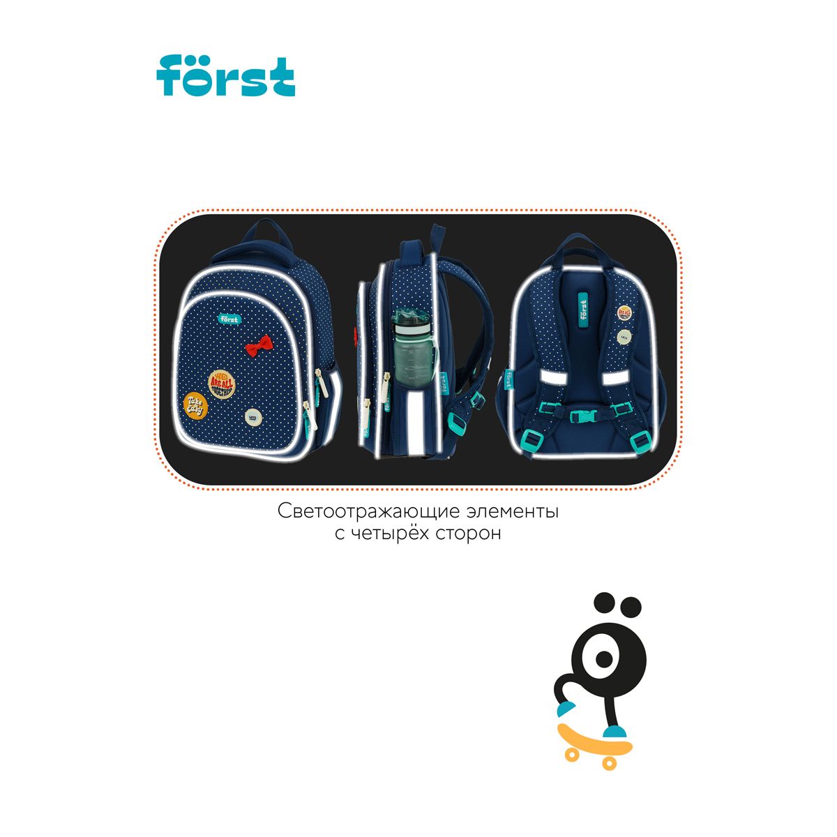 Ранец Först F-LIGHT "Горошек" 37*28*16см, 2 отделения, 2 кармана, анатомическая спинка