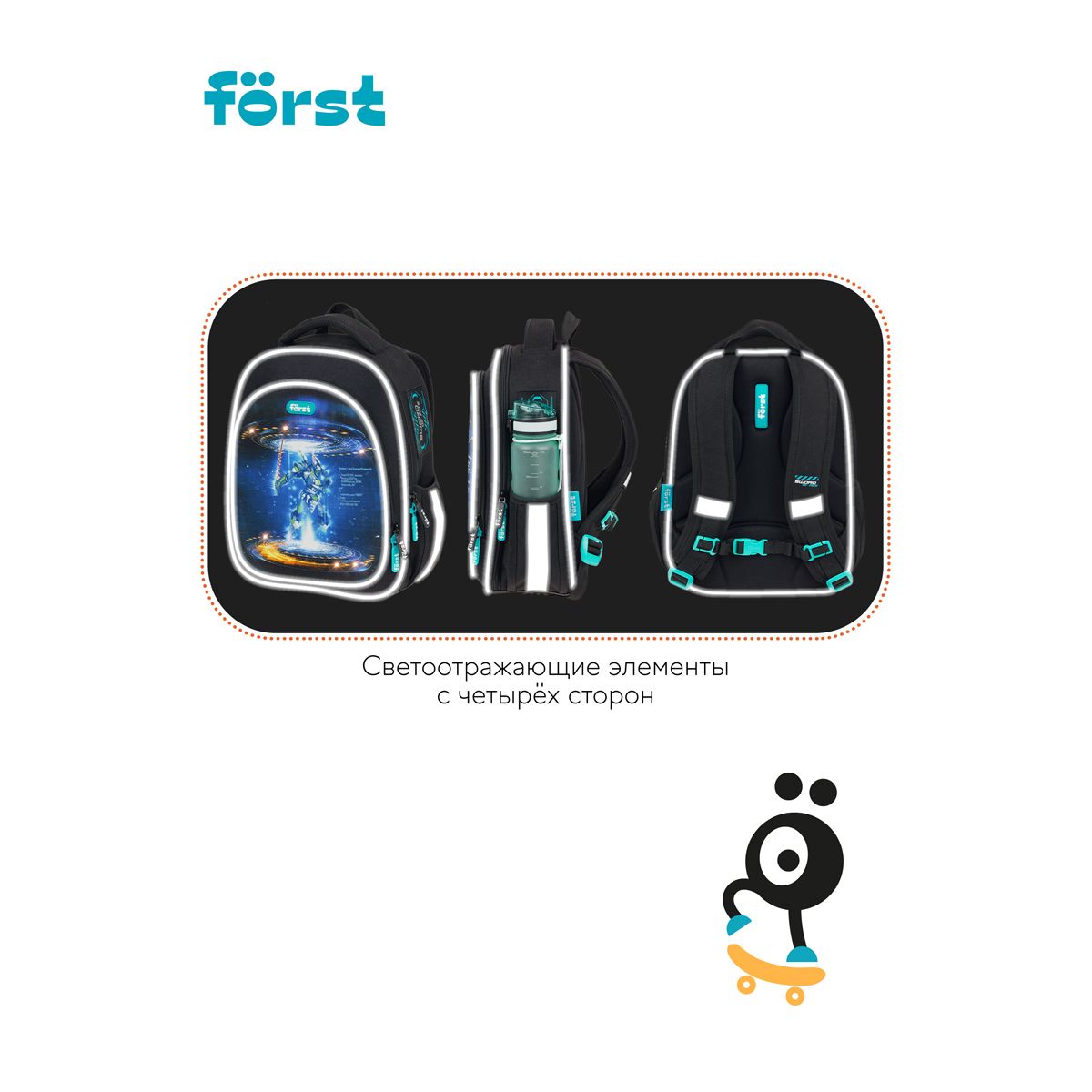 Ранец Först F-LIGHT "Neo future" 37*28*16см, 2 отделения, 2 кармана, анатомическая спинка