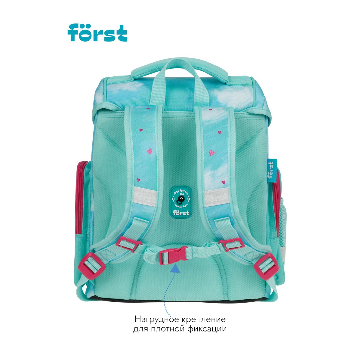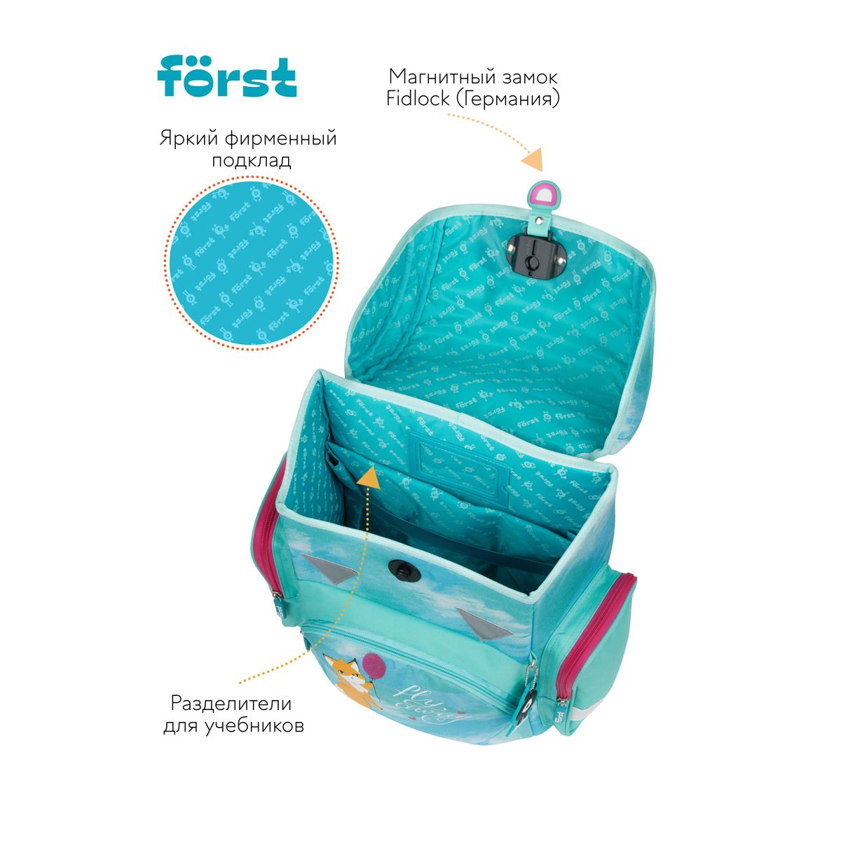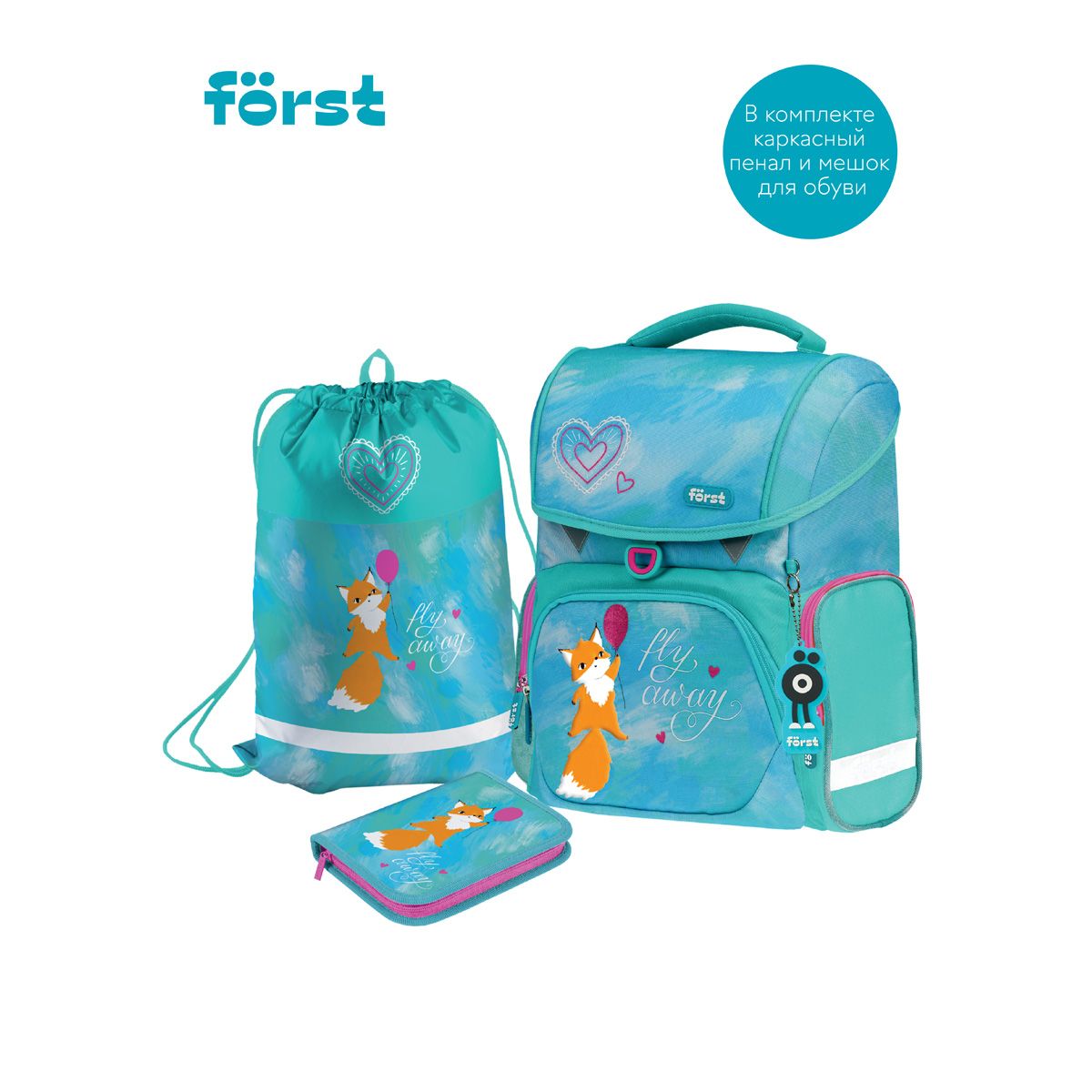 Ранец Först F-Set "Pretty fox" 35*29*16 см, 1 отделение, 3 кармана, анатомическая спинка, пенал, мешок для обуви
