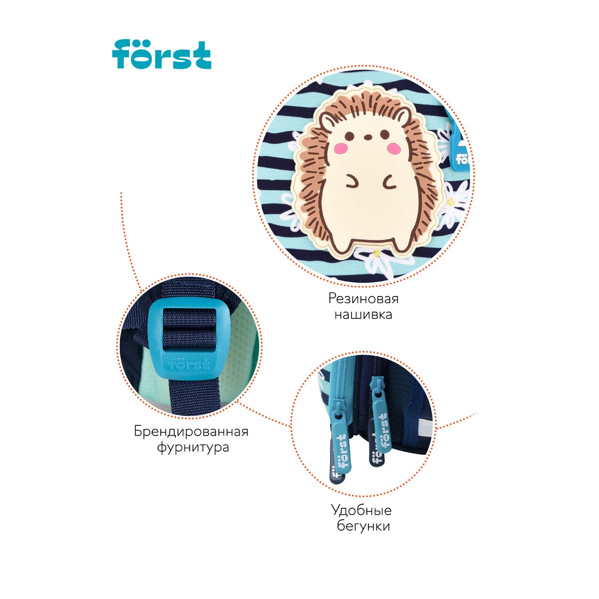 Ранец Först F-Top "Blue hedgehog" 36*28*15см, 2 отделения, 2 кармана, анатомическая спинка