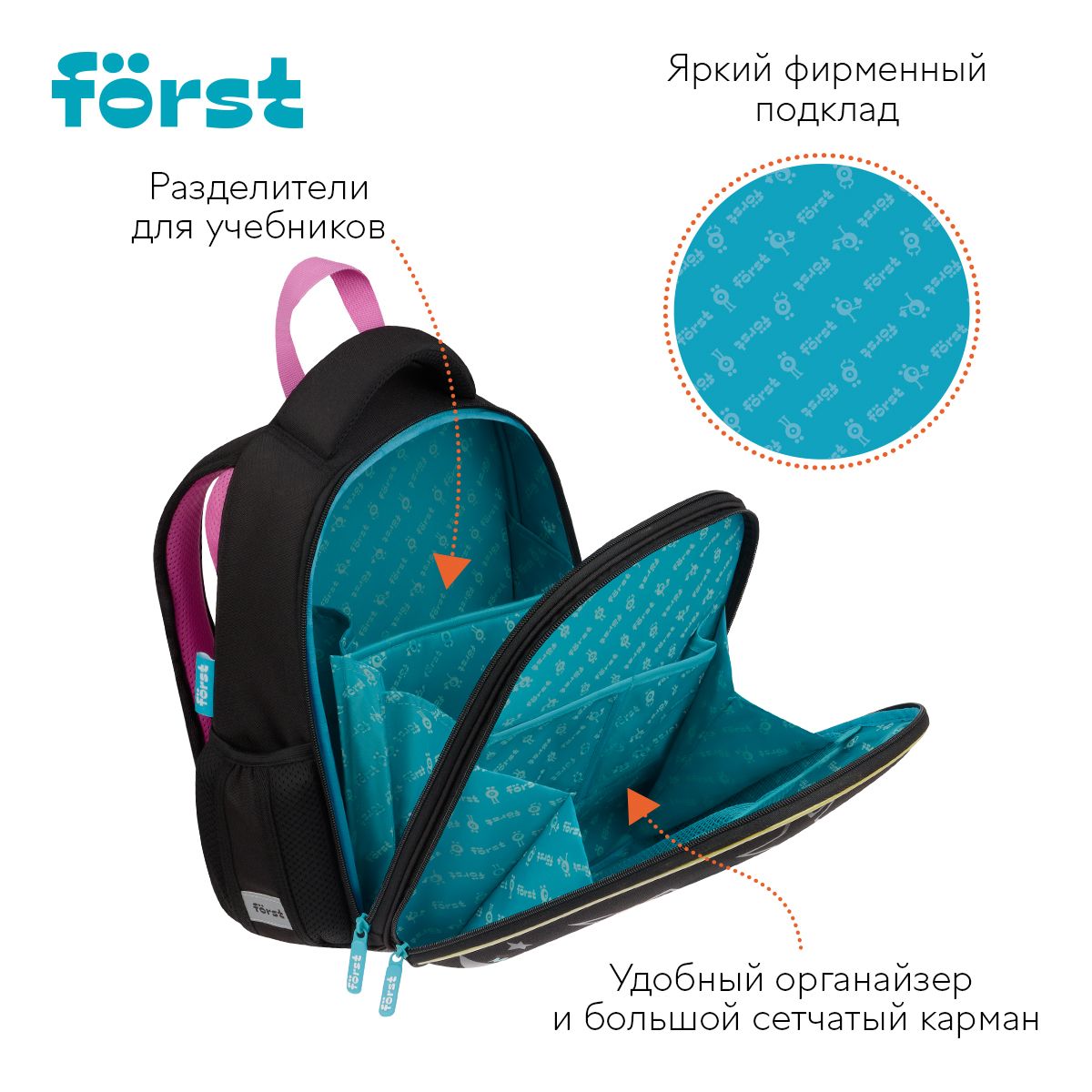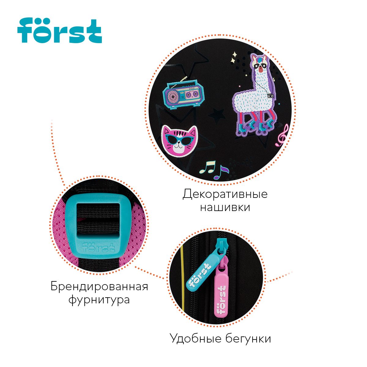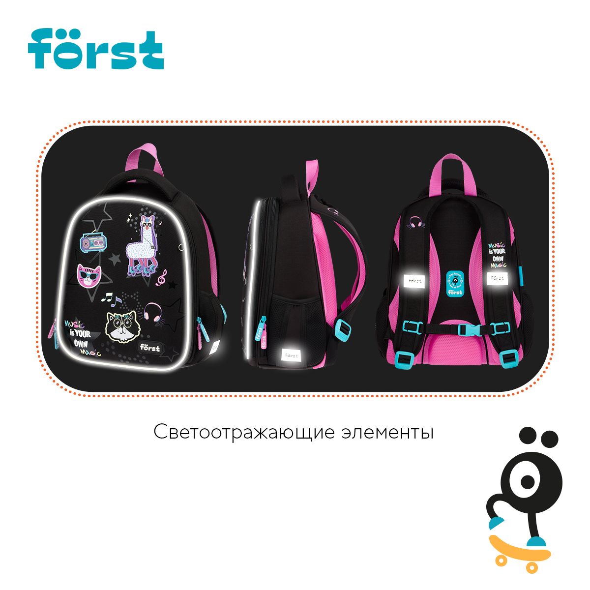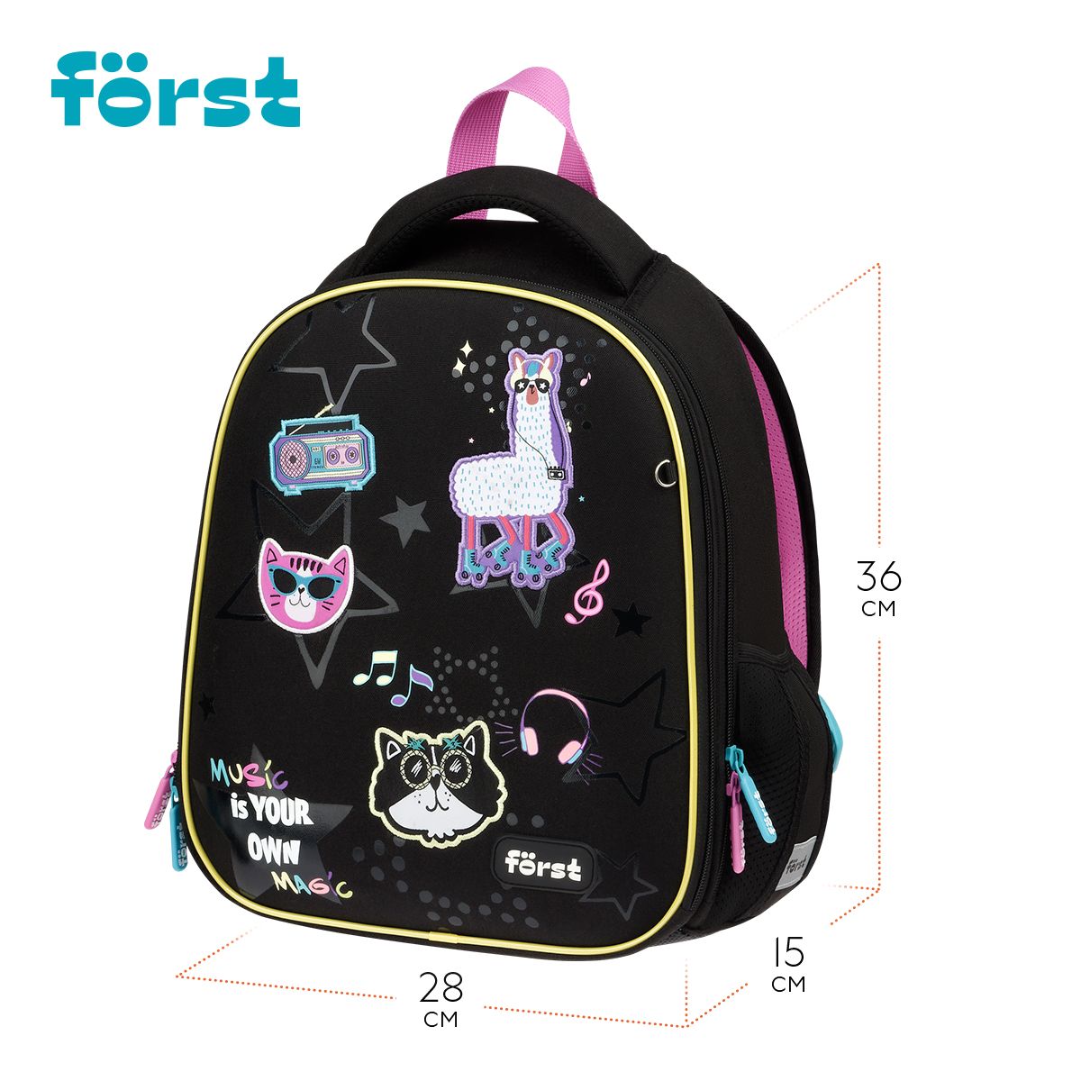 Ранец Först F-Top облегченный "Disco Lama" 36*28*15см, 2 отделения, 2 кармана, анатомическая спинка