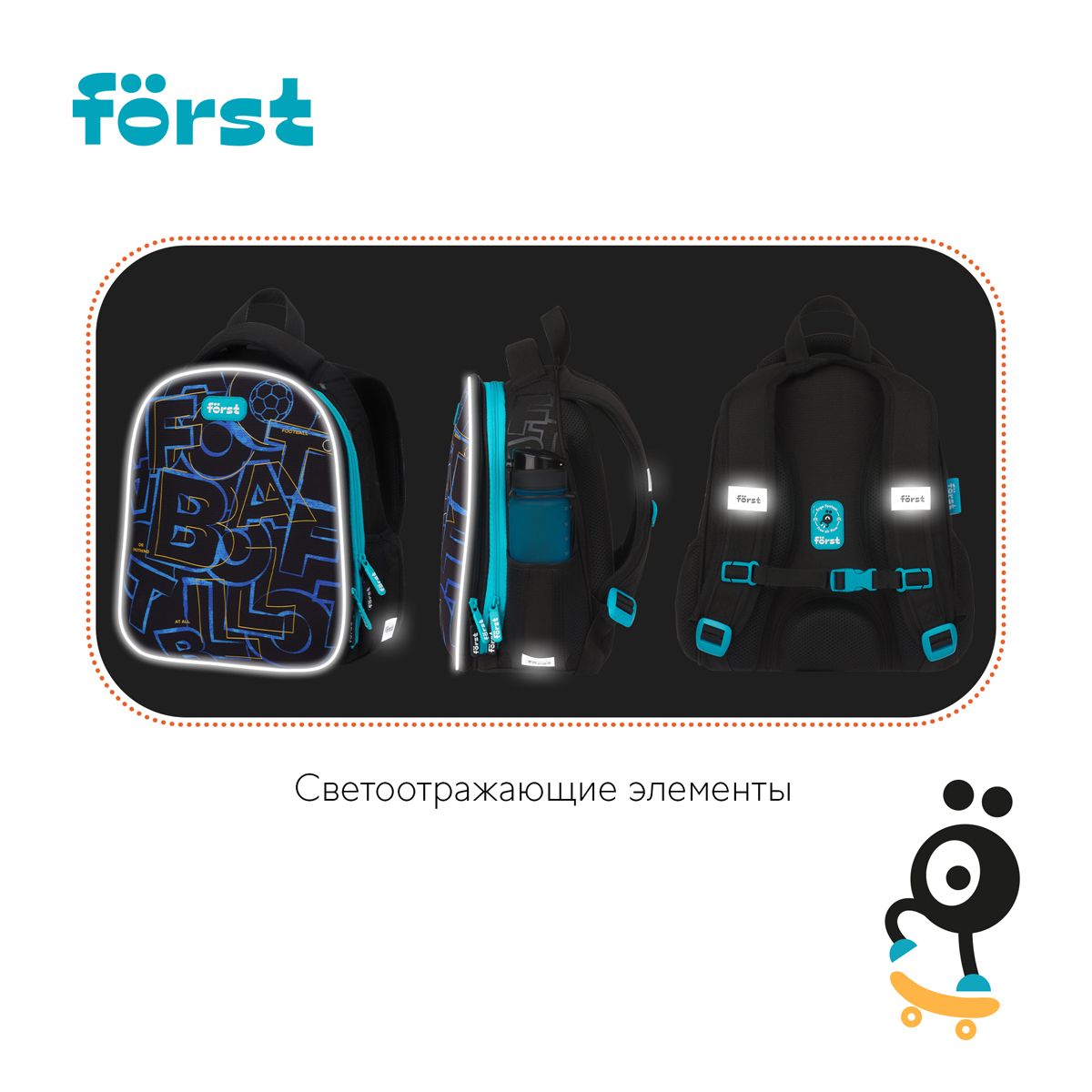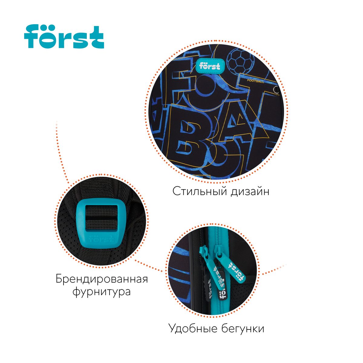Ранец Först F-Top облегченный "Football" 36*28*15см, 2 отделения, 2 кармана, анатомическая спинка