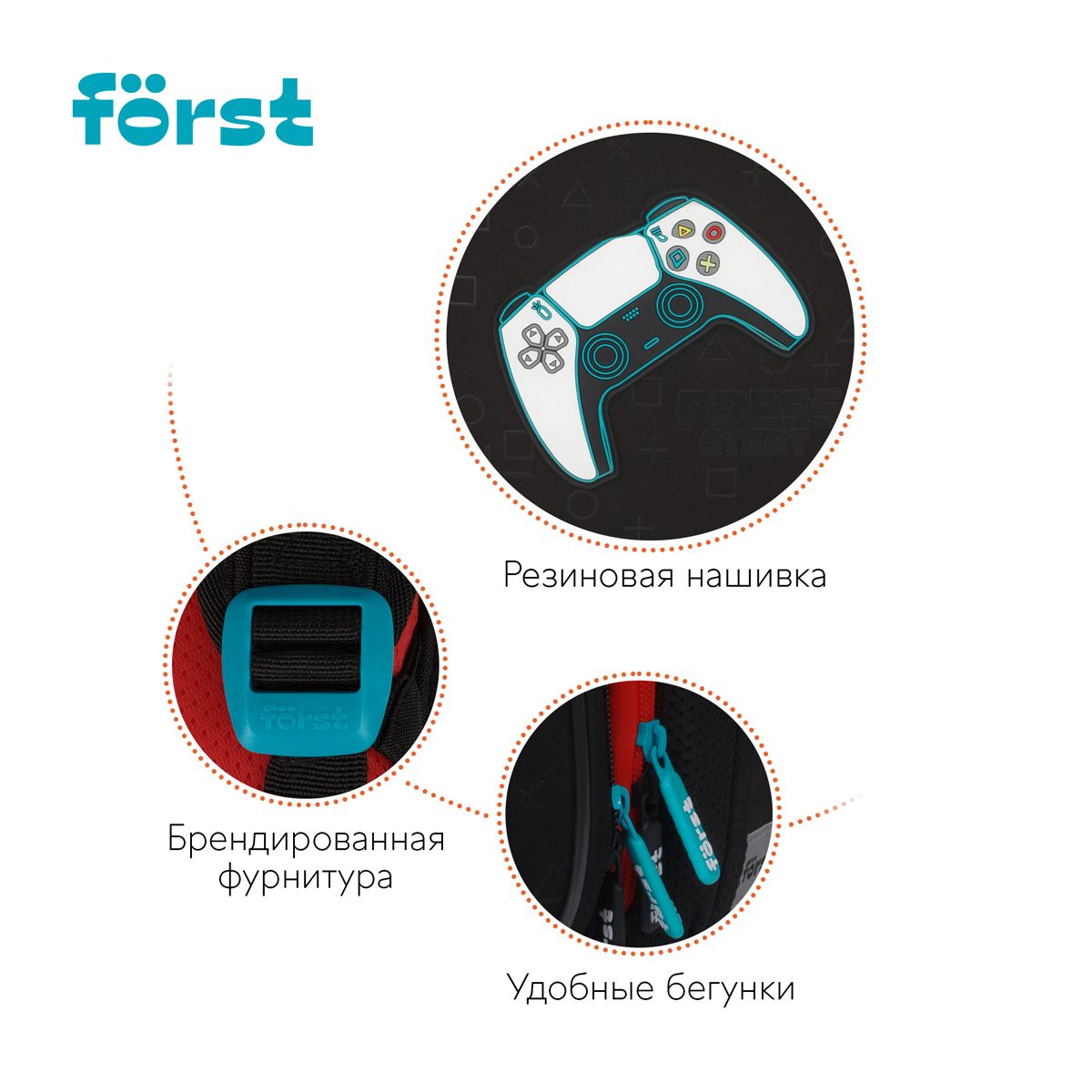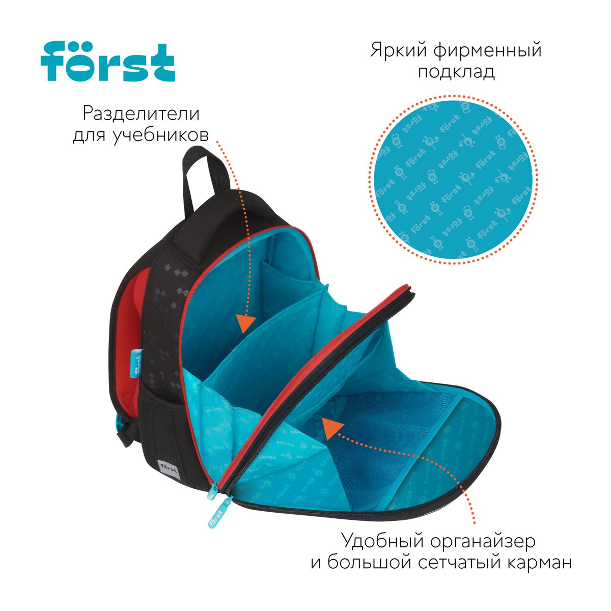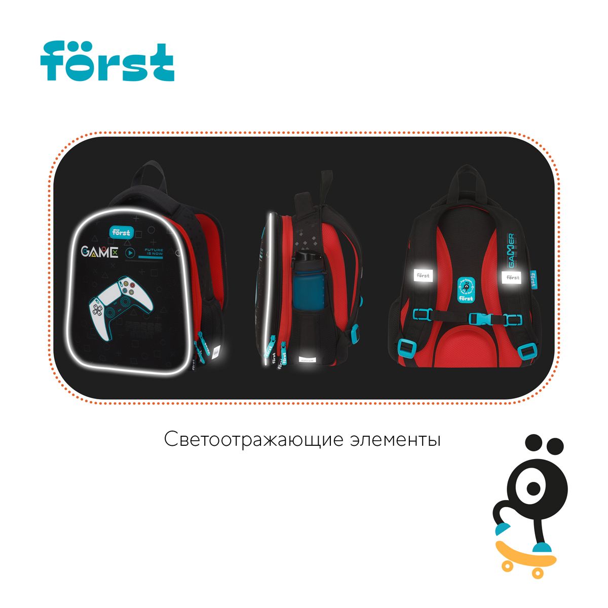 Ранец Först F-Top облегченный "Game" 36*28*15см, 2 отделения, 2 кармана, анатомическая спинка