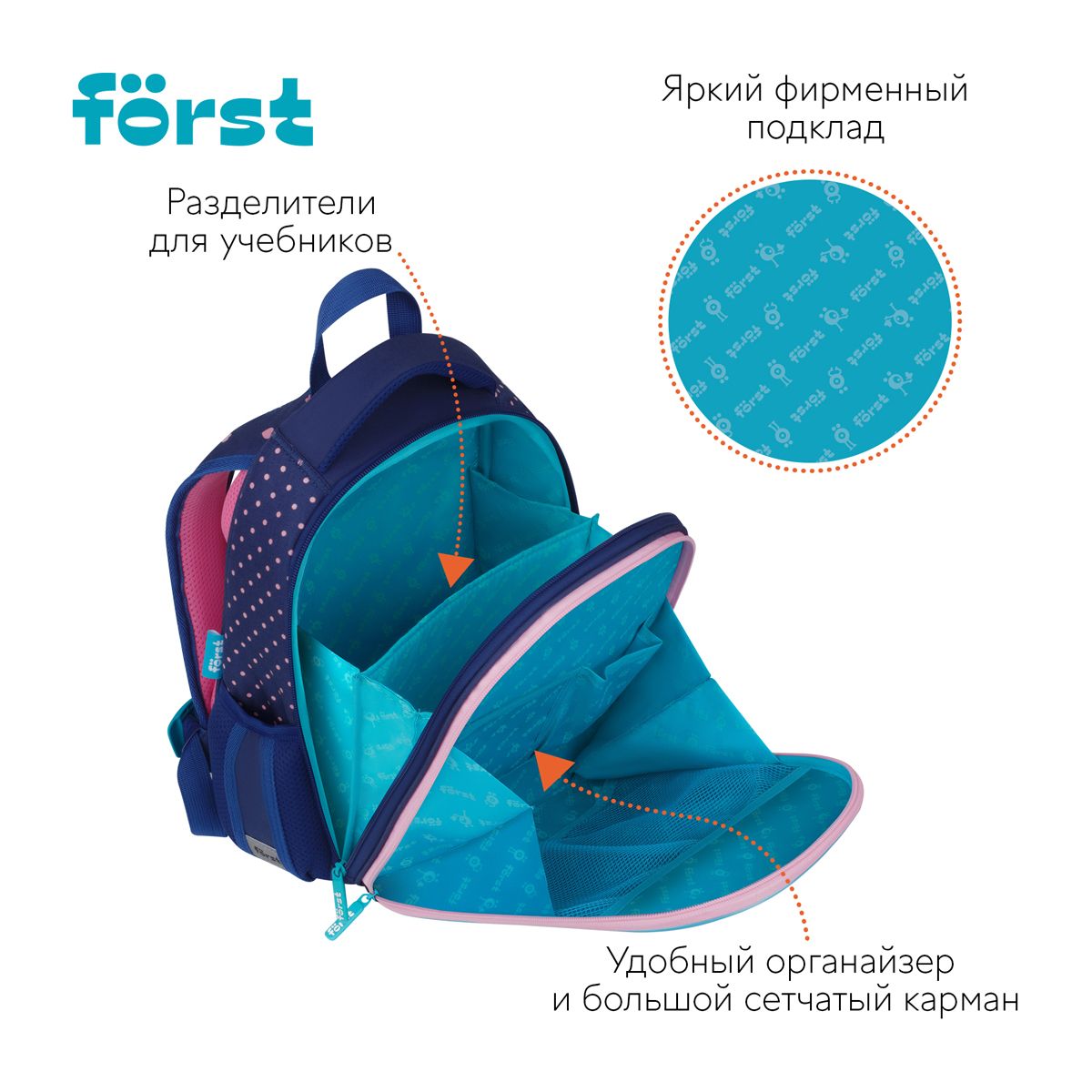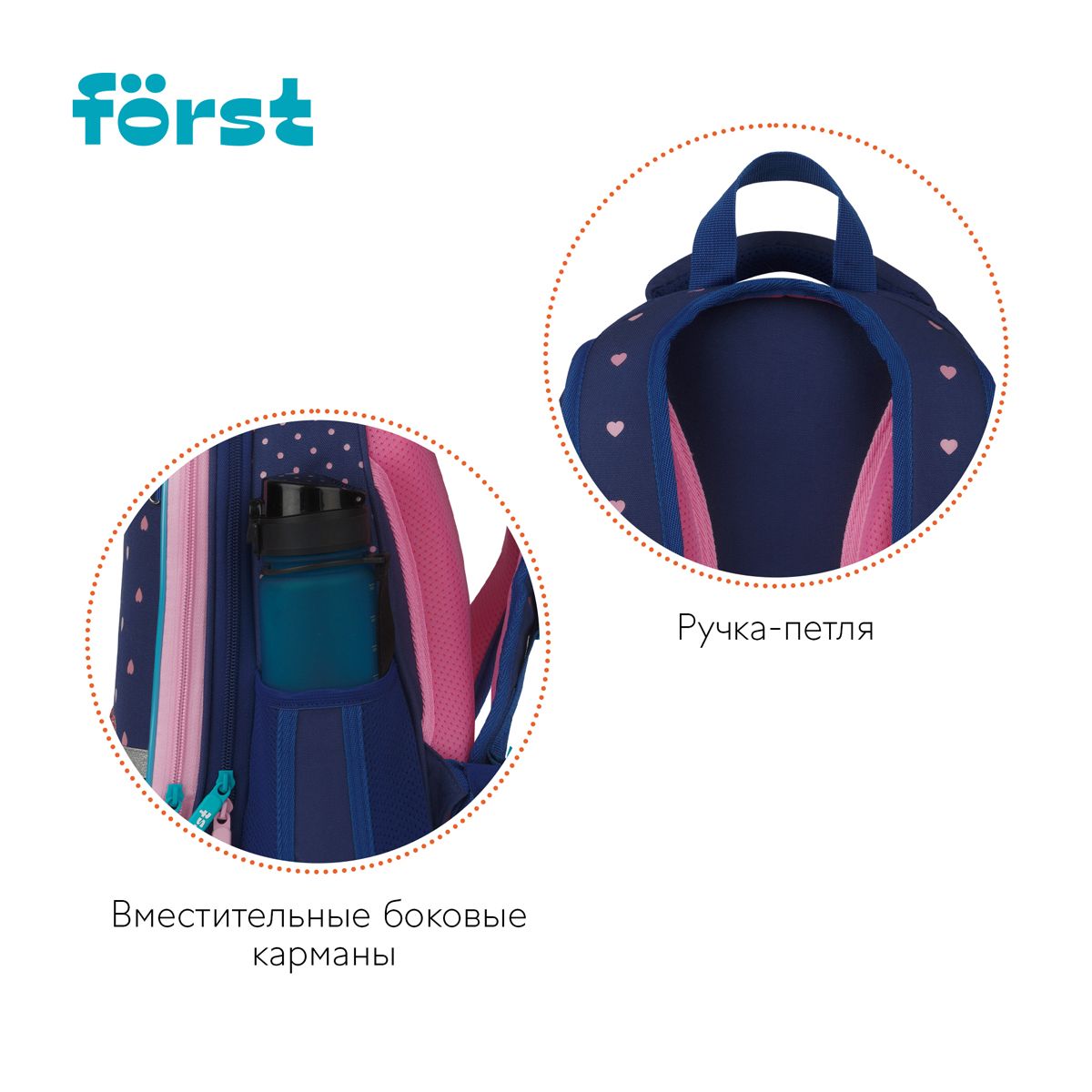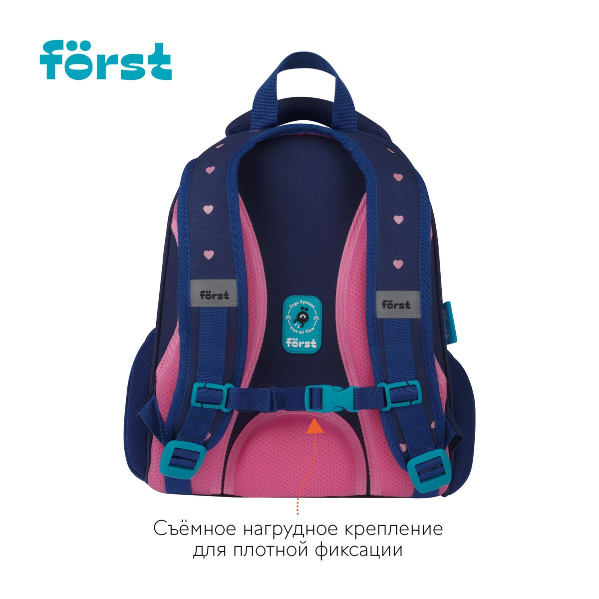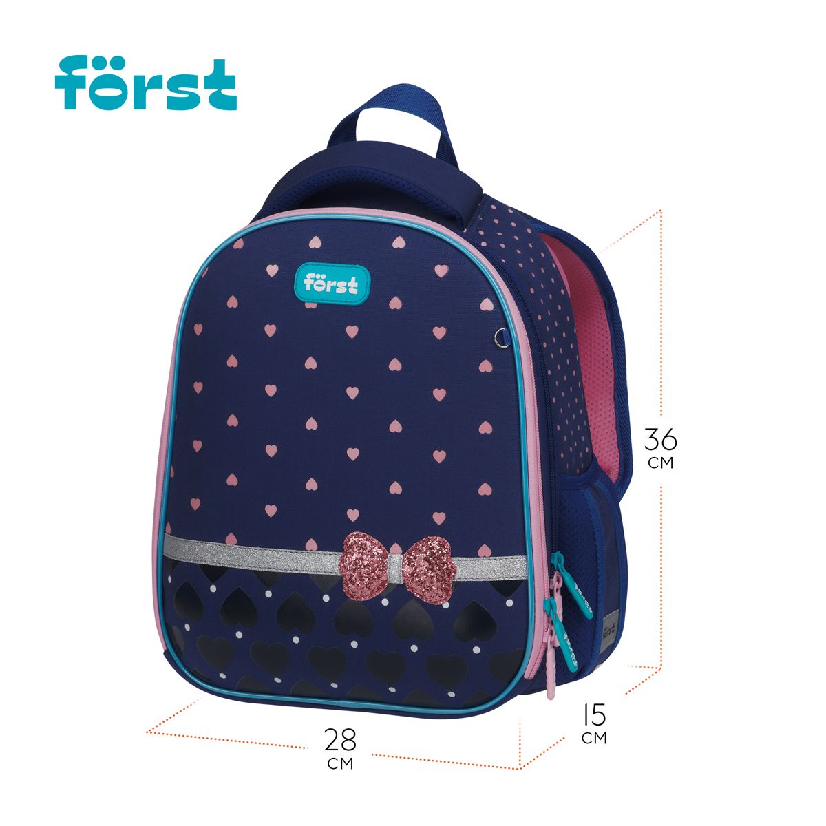 Ранец Först F-Top облегченный "Sweet hearts" 36*28*15см, 2 отделения, 2 кармана, анатомическая спинка
