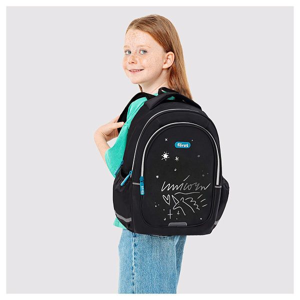 • Ортопедическая спинка и мягкие лямки — для снижения нагрузки на спину и плечи.