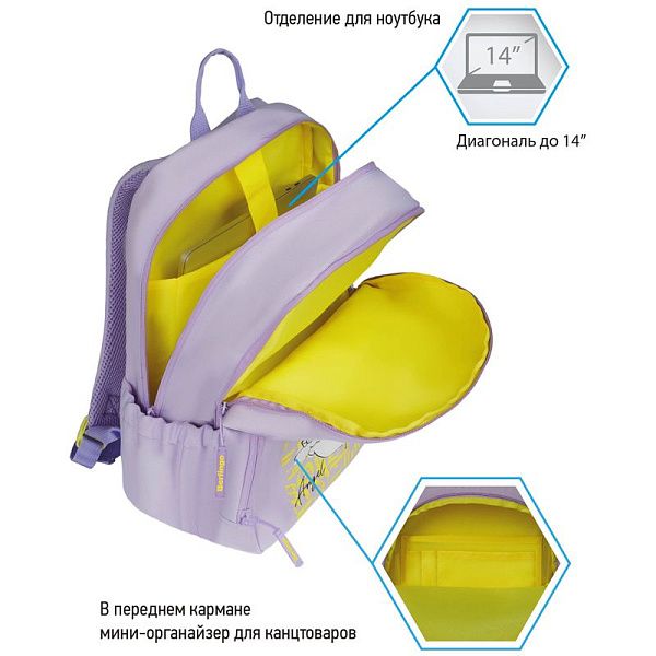 - Ортопедическая спинка и мягкие лямки — для снижения нагрузки на спину и плечи.