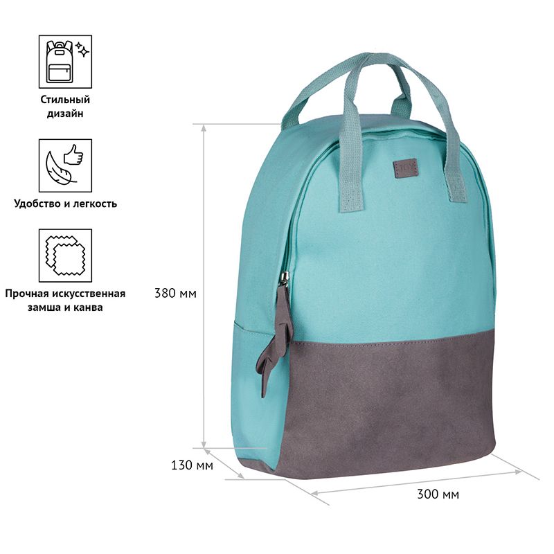 Рюкзак ArtSpace Casual "Soft mint"38*30*13см, 1 отделение, 2 кармана, иск. замша/канва