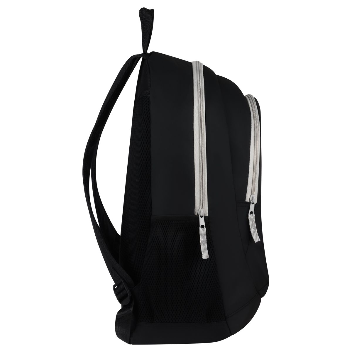 Рюкзак сделан из водоотталкивающей ткани — полиэстера. Спинка и лямки уплотнены слоем спонжа толщиной 5 мм. Такой рюкзак не натирает плечи и спину.