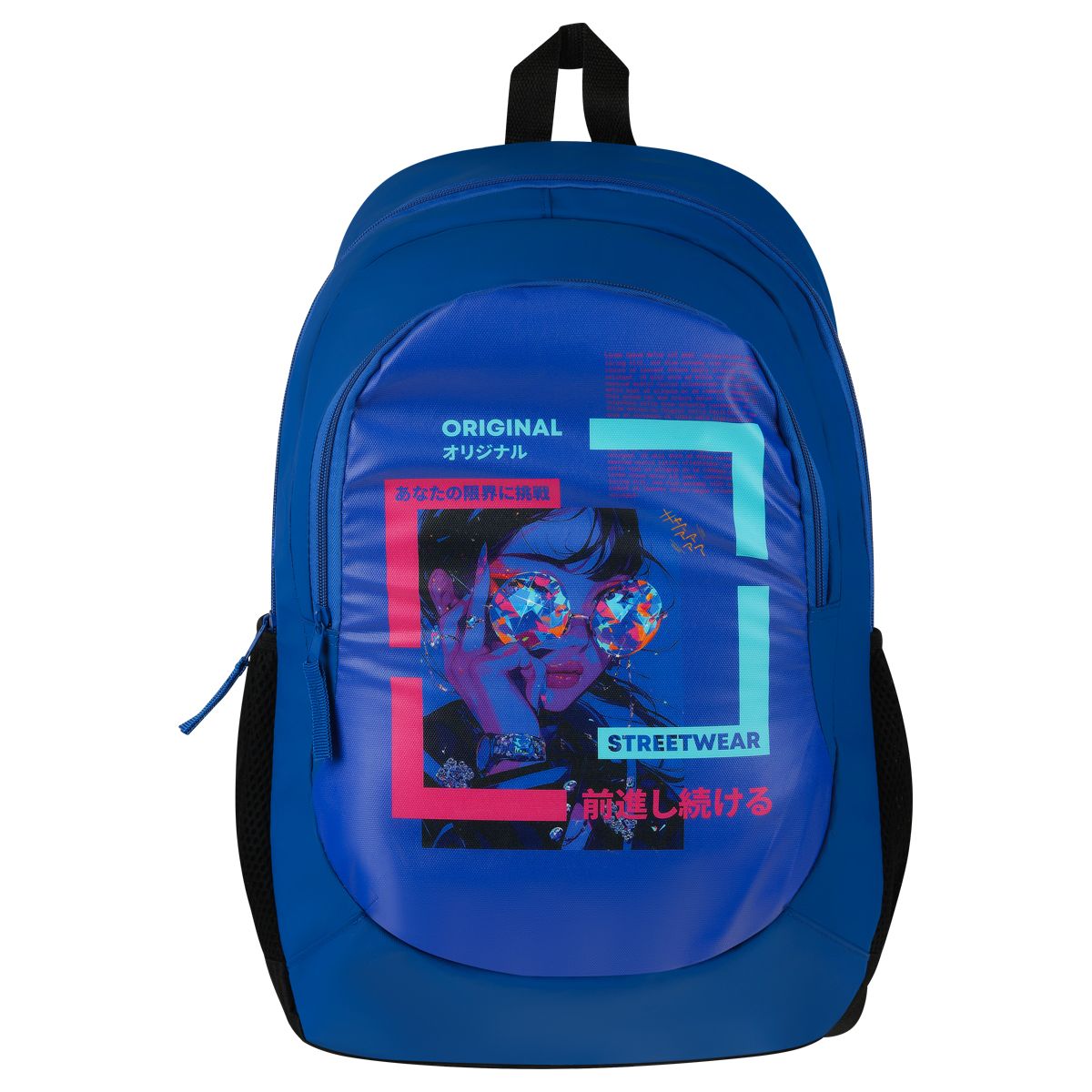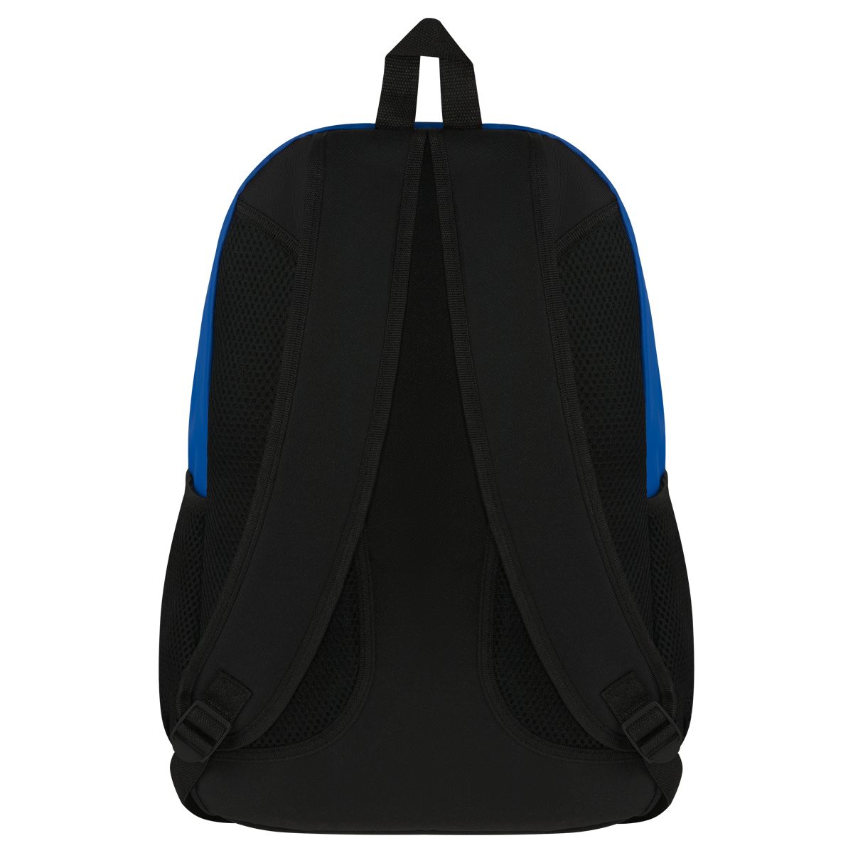 Рюкзак сделан из водоотталкивающей ткани — полиэстера. Спинка и лямки уплотнены слоем спонжа толщиной 5 мм. Такой рюкзак не натирает плечи и спину.