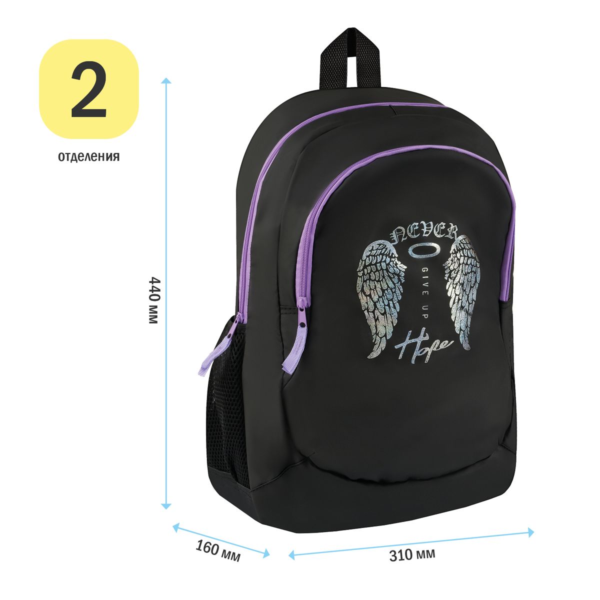 Рюкзак ArtSpace Classic "Wings", 45*30*16см, 2 отделения, 2 кармана, уплотн. спинка