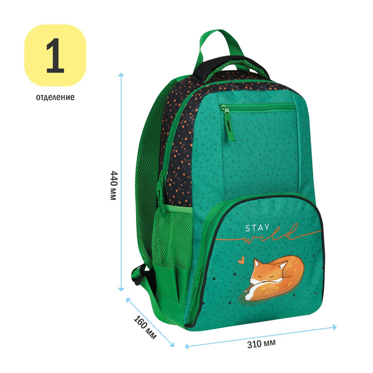 Рюкзак ArtSpace School "Foxy", 44*31*16см, 1 отделение, 4 кармана, уплотн. спинка