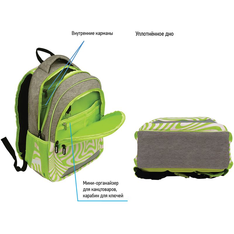 Формованная спинка из экологичного ЭВА-материала устойчива к деформации, создана с учетом анатомического строения спины ребенка, имеет вентиляционные каналы для свободной циркуляции воздуха. Плотные лямки с возможностью регулировки и нагрудный фиксатор позволяют равномерно распределить нагрузку на спину ребенка. Световозвращающие элементы помогают обеспечить безопасность ребенка в темное время суток. Вес изделия 630 граммов.