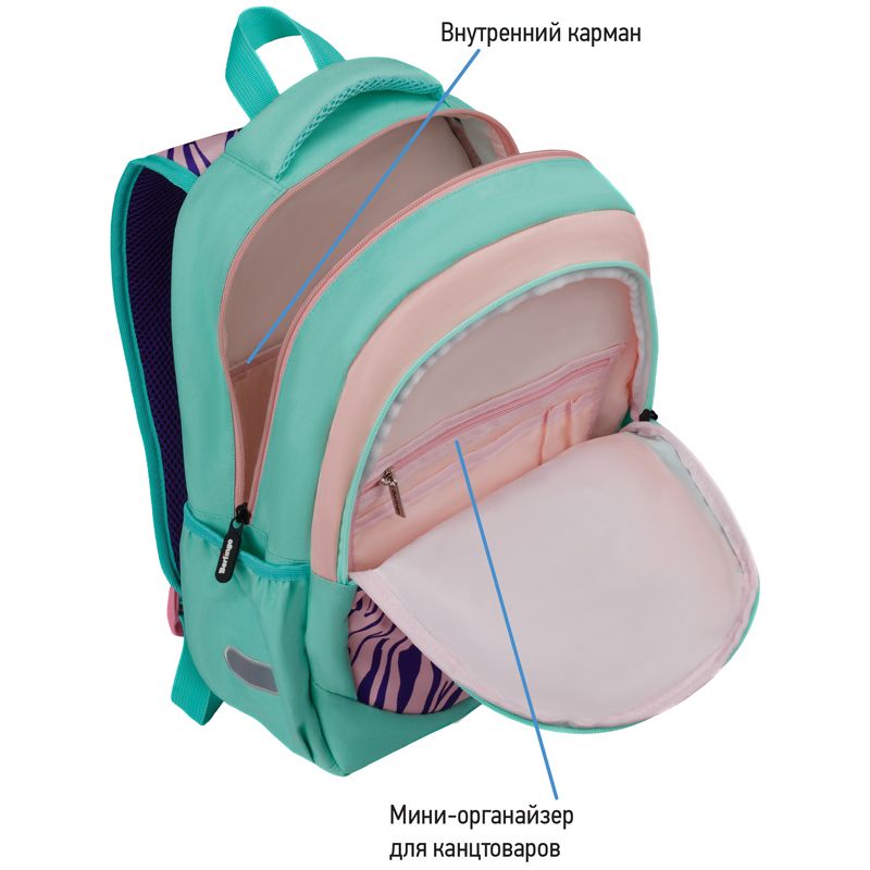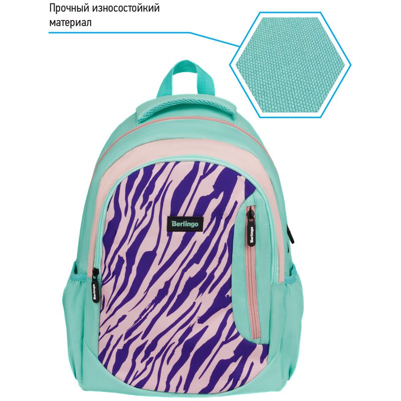 Рюкзак Berlingo Boom "Animal pattern mint" 38,5*29*12см, 2 отделения, 3 кармана, анатомическая ЭВА спинка