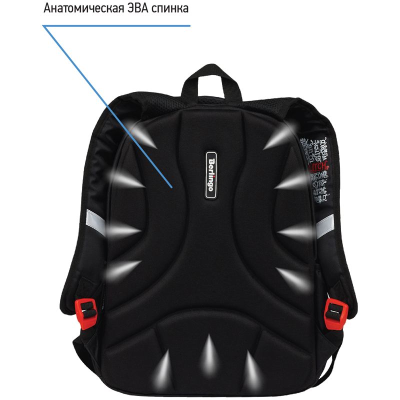 Формованная спинка из экологичного ЭВА-материала устойчива к деформации, создана с учетом анатомического строения спины ребенка, имеет вентиляционные каналы для свободной циркуляции воздуха. Плотные лямки с возможностью регулировки и нагрудный фиксатор позволяют равномерно распределить нагрузку на спину ребенка. Световозвращающие элементы обеспечивают безопасность в темное время суток. Вес изделия 510 граммов.