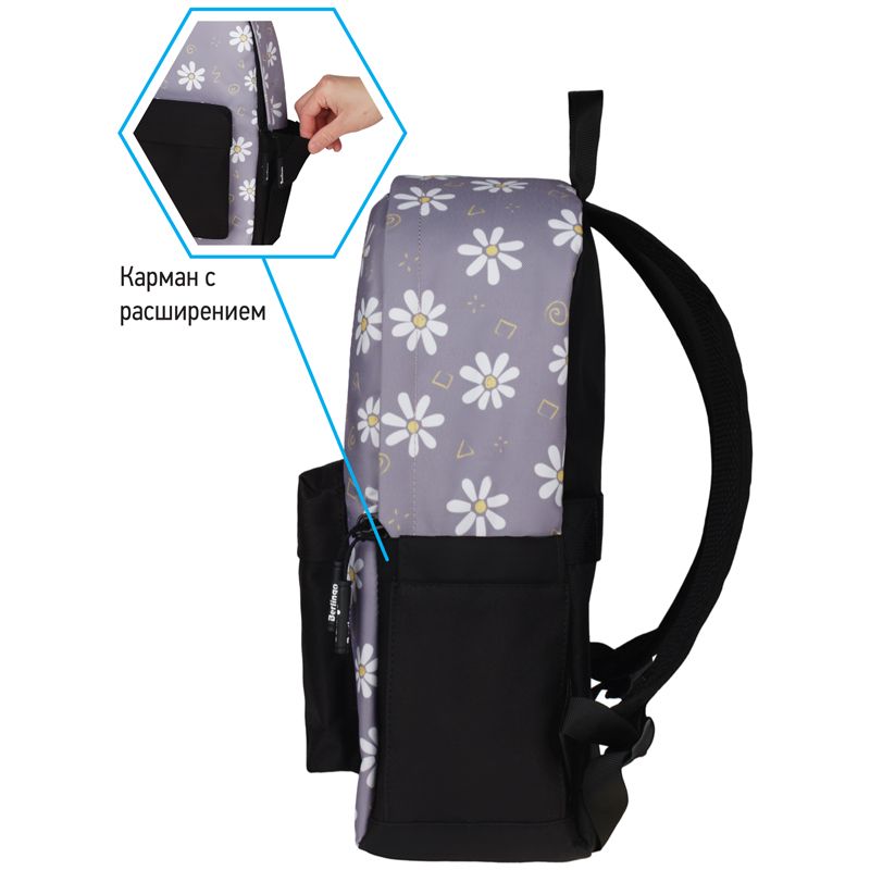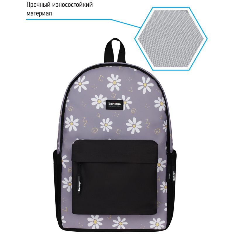 Рюкзак Berlingo Casual "Chamomile black" 39,5*27*13см, 1 отделение, 3 кармана, уплотненная спинка