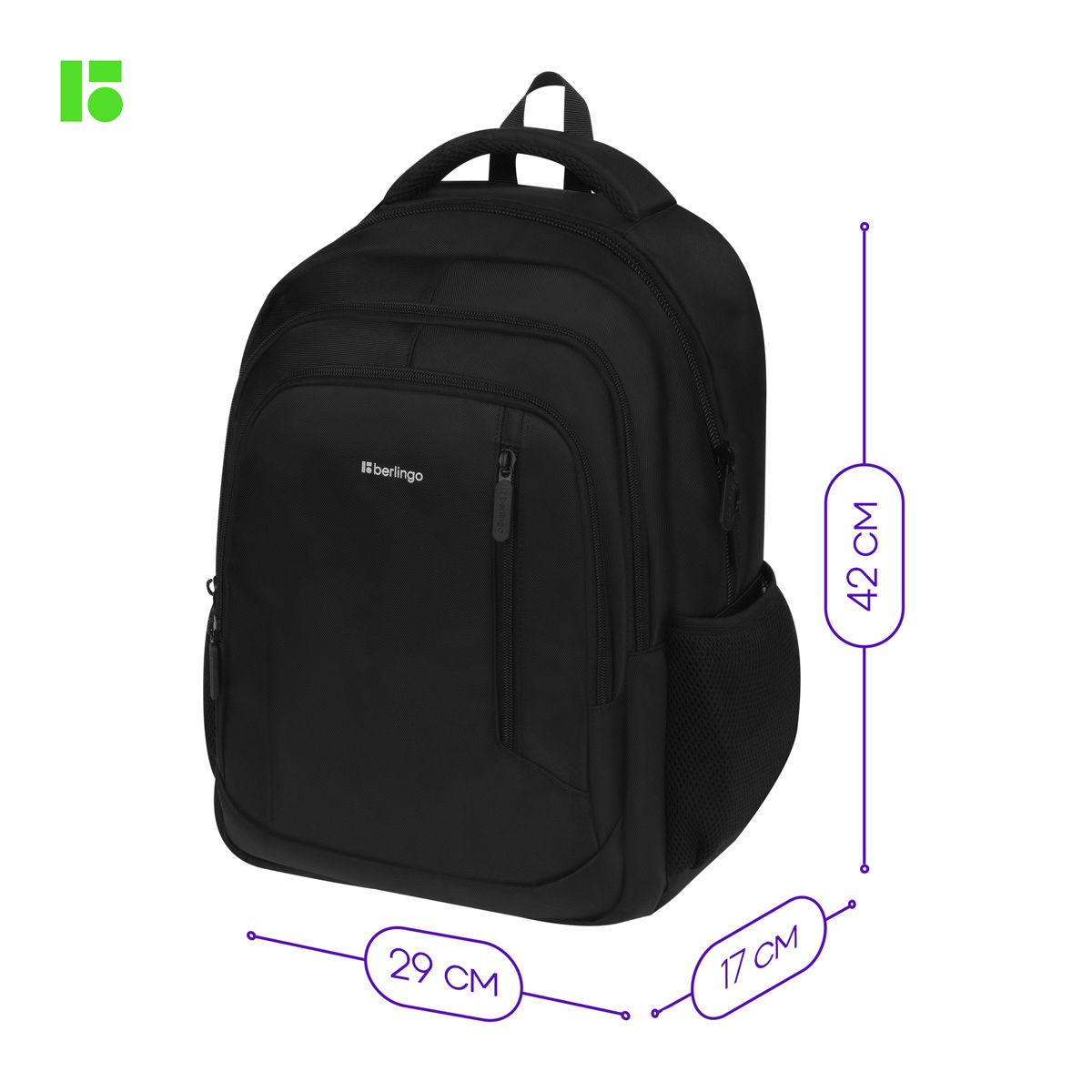 Рюкзак Berlingo City "Comfort black" 42*29*17см, 3 отделения, 3 кармана, отделение для ноутбука, эргономическая спинка