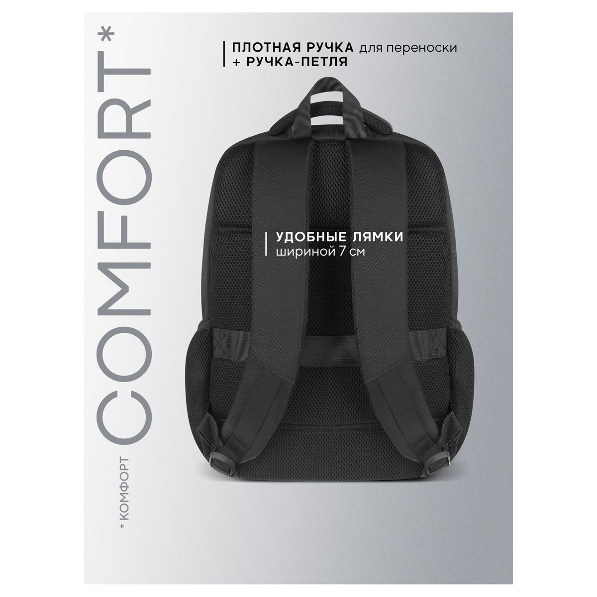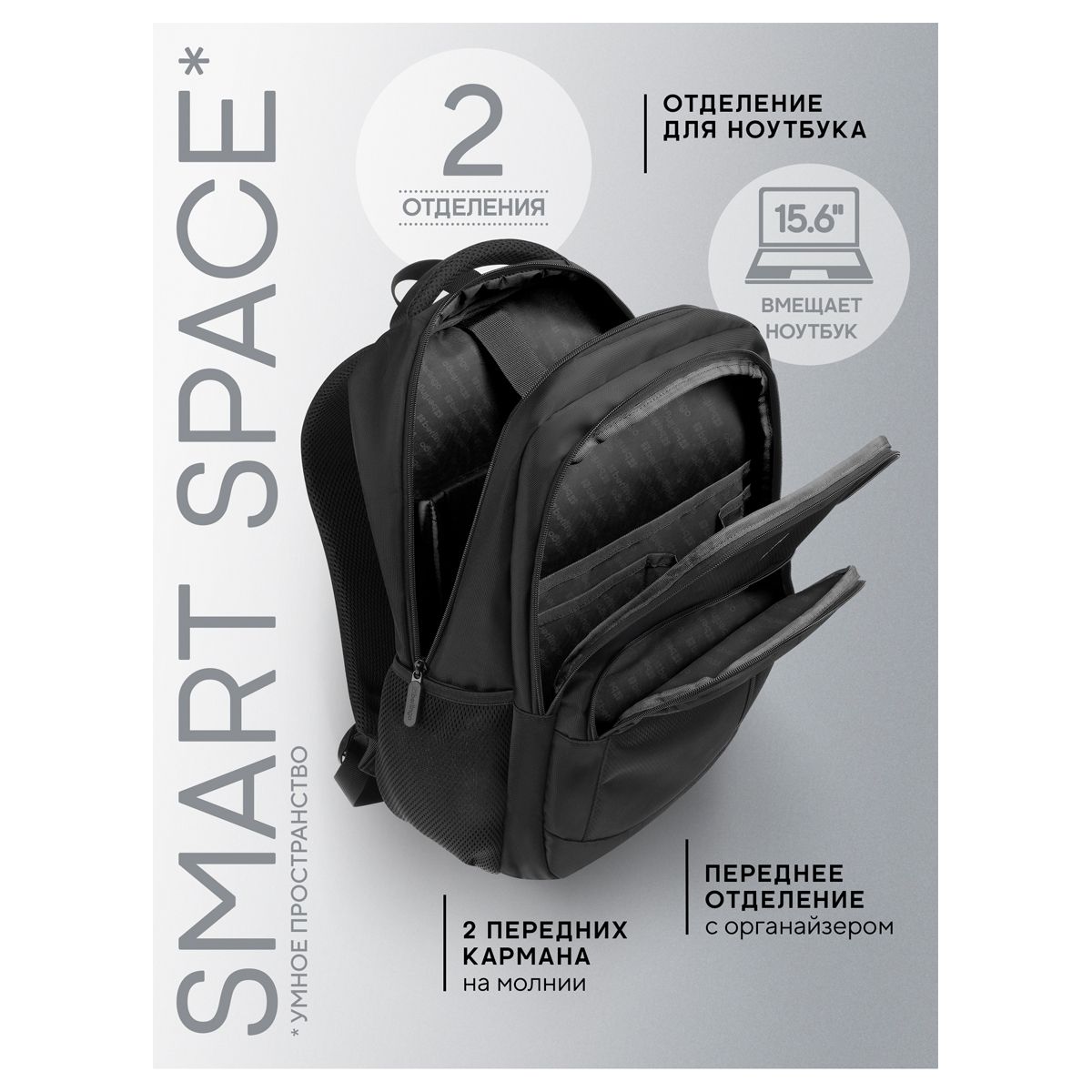 Эргономичная спинка и широкие лямки позволят равномерно распределить нагрузку на позвоночник. Внутренний органайзер и дополнительные карманы помогают поддерживать порядок и обеспечивает бережное хранение необходимых документов.