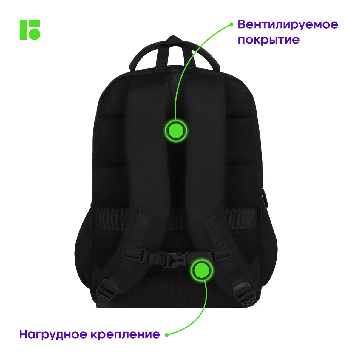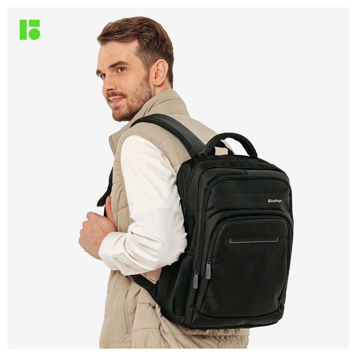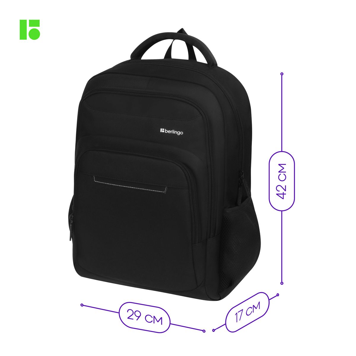 Рюкзак Berlingo City "Strict black" 42*29*17см, 2 отделения, 3 кармана, отделение для ноутбука, эргономическая спинка