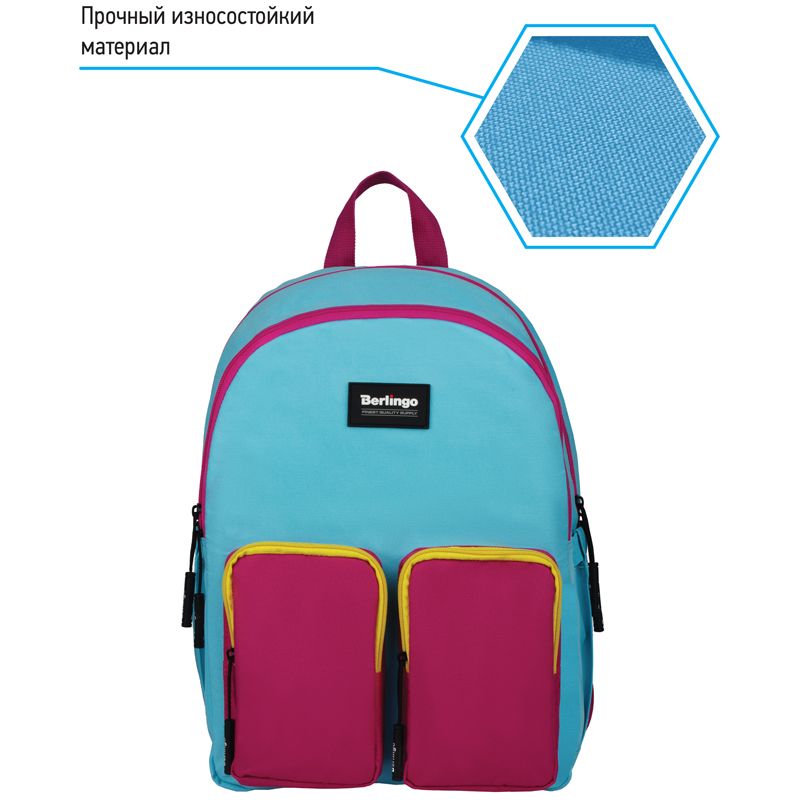 Рюкзак Berlingo Color blocks "Blue fuxia" 39*28*17см, 2 отделения, 4 кармана, уплотненная спинка